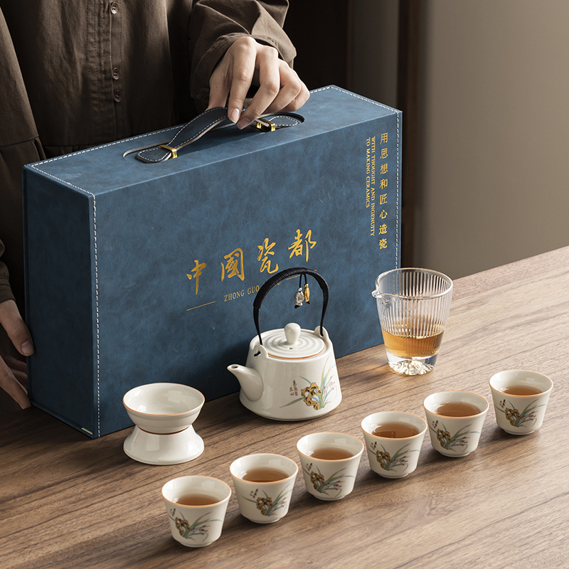 新しい草木灰ティーポットティーセット、見栄えが良く実用的なカンフーティーセット、高級ギフトボックス、ビジネスギフト