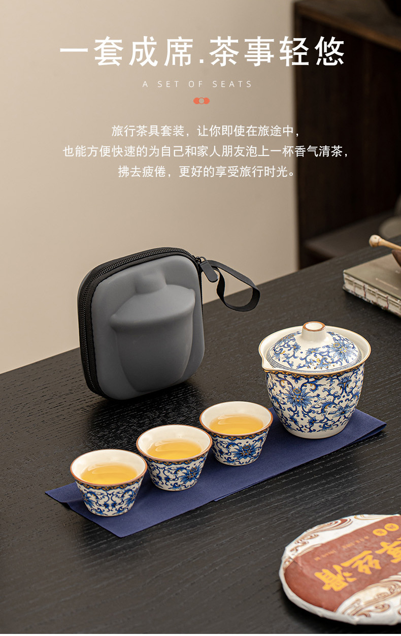 便携旅行茶具套装陶瓷功夫茶具盖碗一壶三杯干泡收纳茶台整套礼品