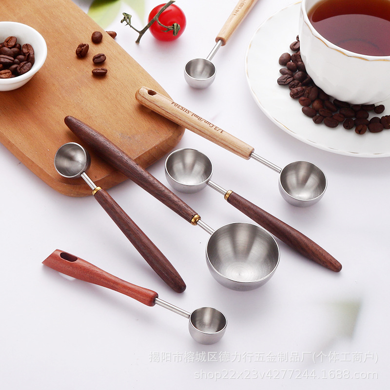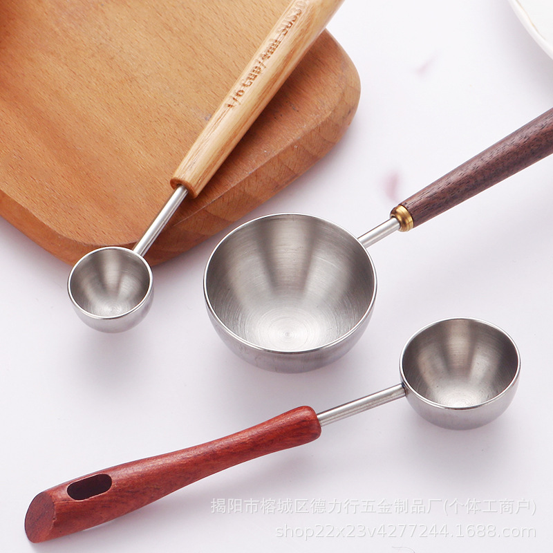 304ステンレス計量スプーン花梨木柄焙煎コーヒー豆乳粉末調味料計量スプーン目盛り坪量スプーン