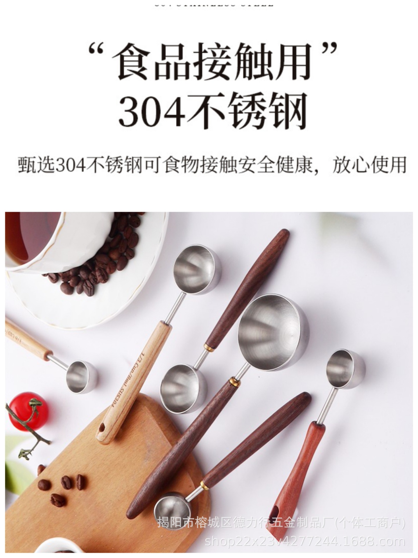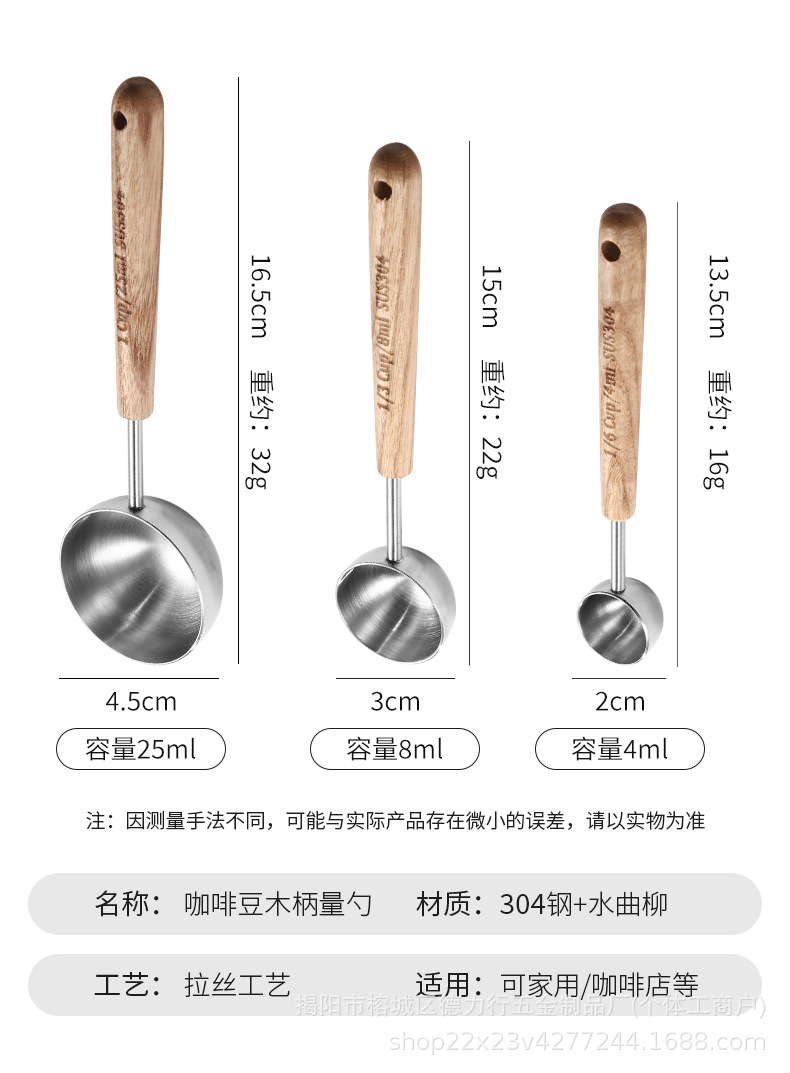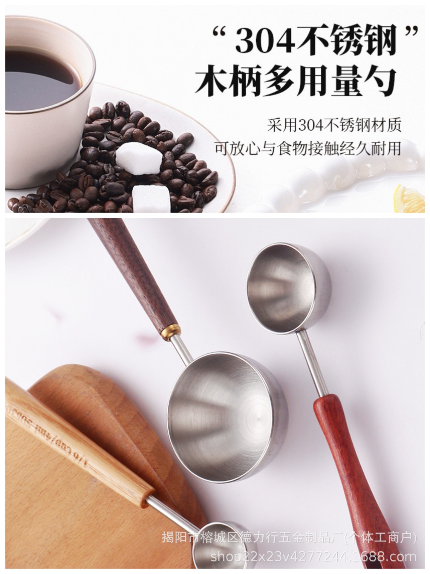 メーカー直販304ステンレス計量スプーン木柄は粉をつけないで錆びないコーヒー粉ミルク計量スプーン調味料計量スプーン