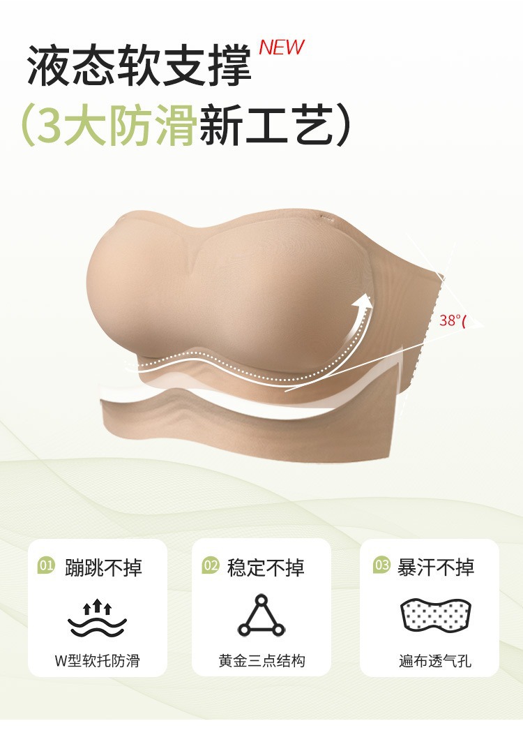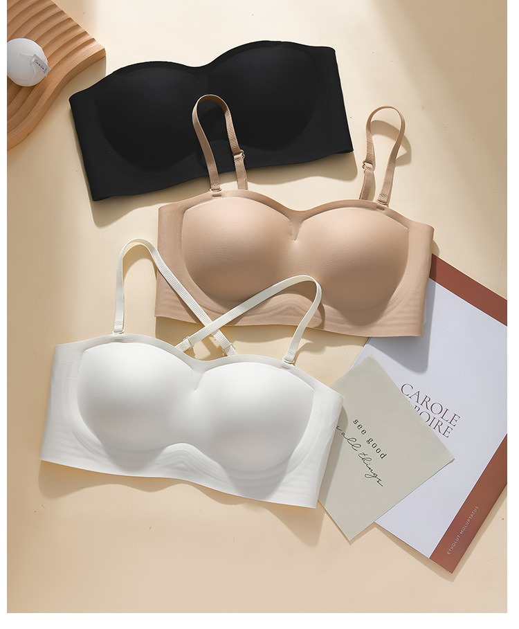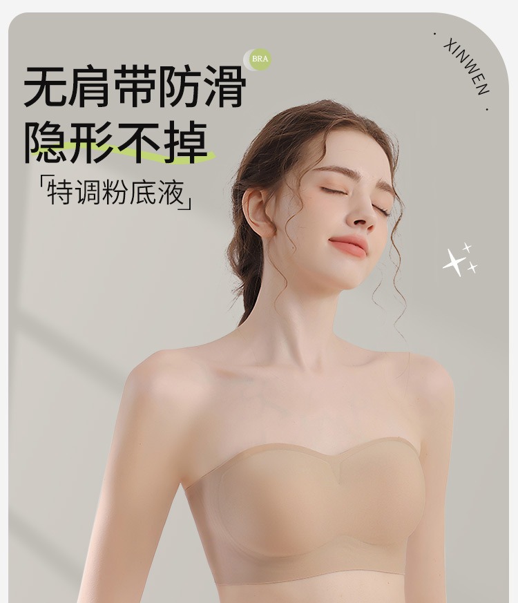 リキッドファンデーションストラップレス下着女性の薄い小さな胸プッシュアップ滑り止め見えないシームレスなチューブトップ美しいバックブラジャー
