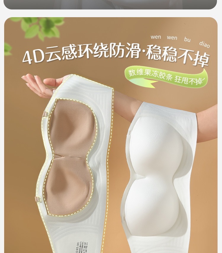 夏用ストラップレス下着、大きな胸を落とさないウェディングドレス、チューブトップ下着、女性用小さな胸プッシュアップ、滑り止め、厚みのある胸の包み込み