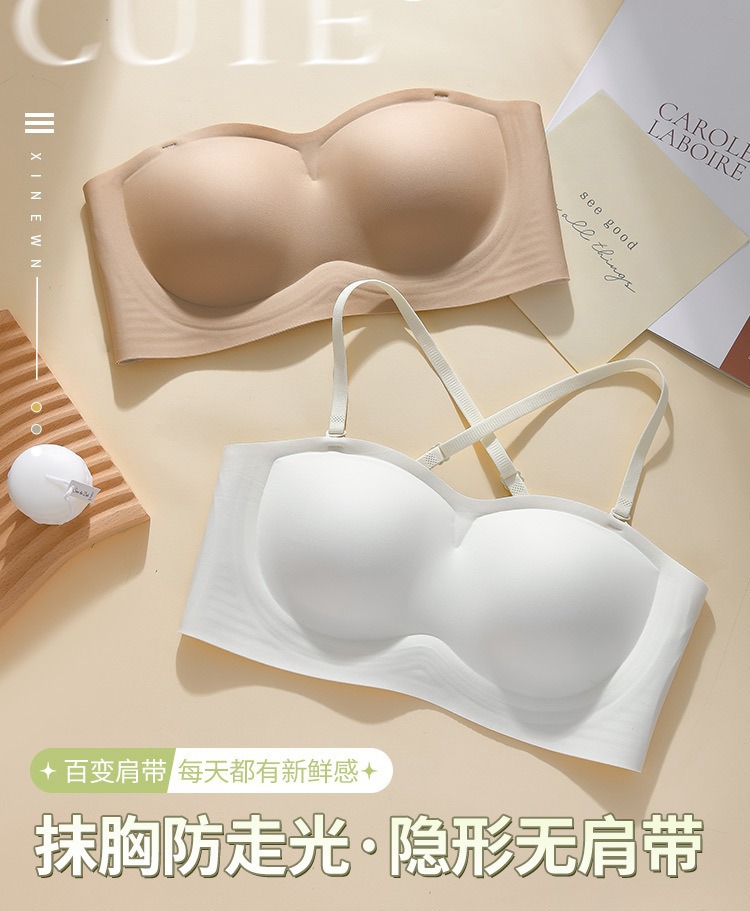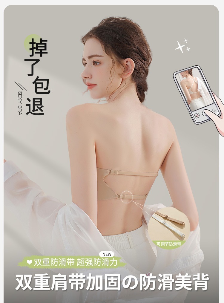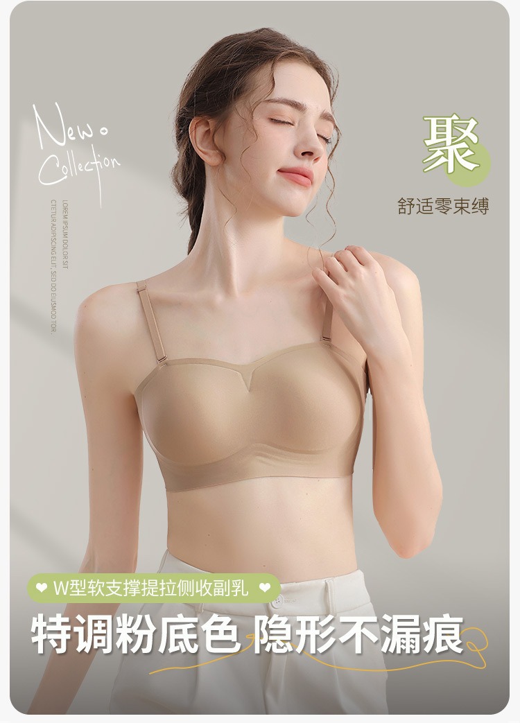 新款无肩带内衣女防滑聚拢无钢圈小胸聚拢收副乳调整型文胸胸罩