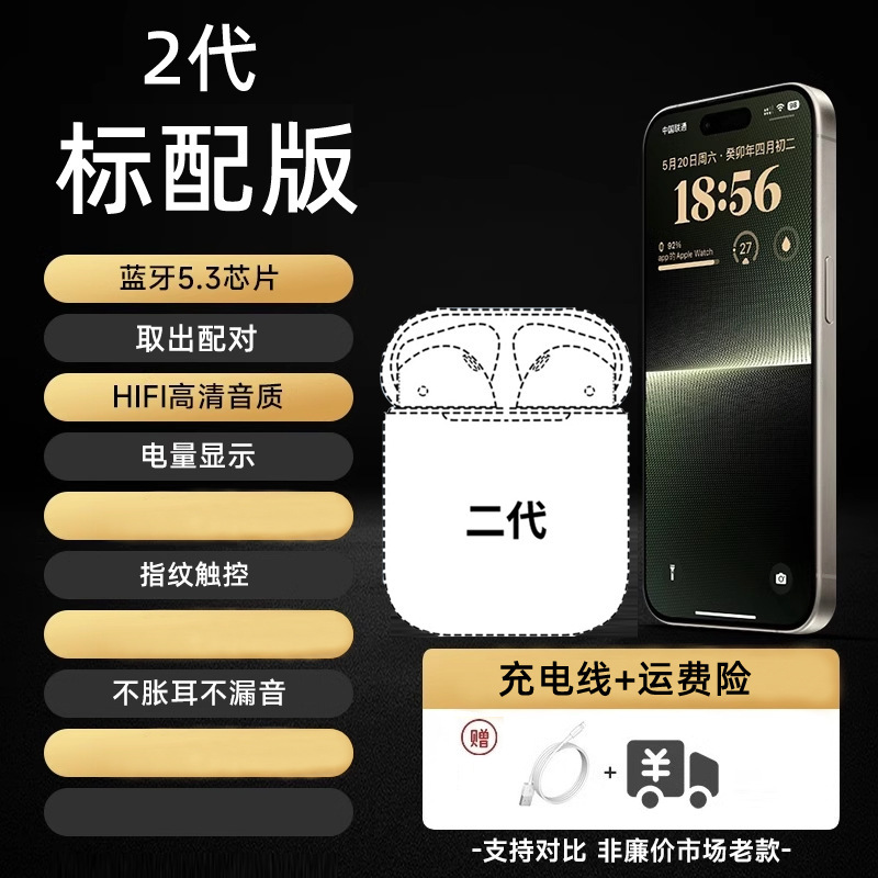 华强北无线蓝牙耳机二代三代四代五代Airpods pro2双耳入耳式超长