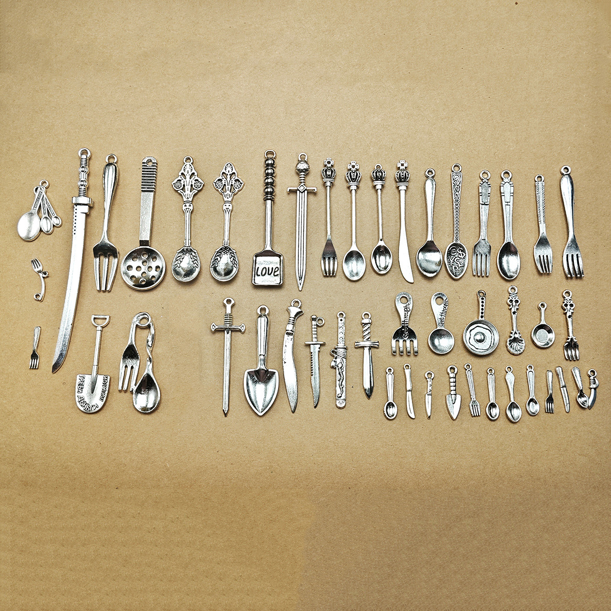 产品样式:外贸热销合金刀剑 十字挂件 刀叉勺仿真餐具吊坠手链项链耳饰diy