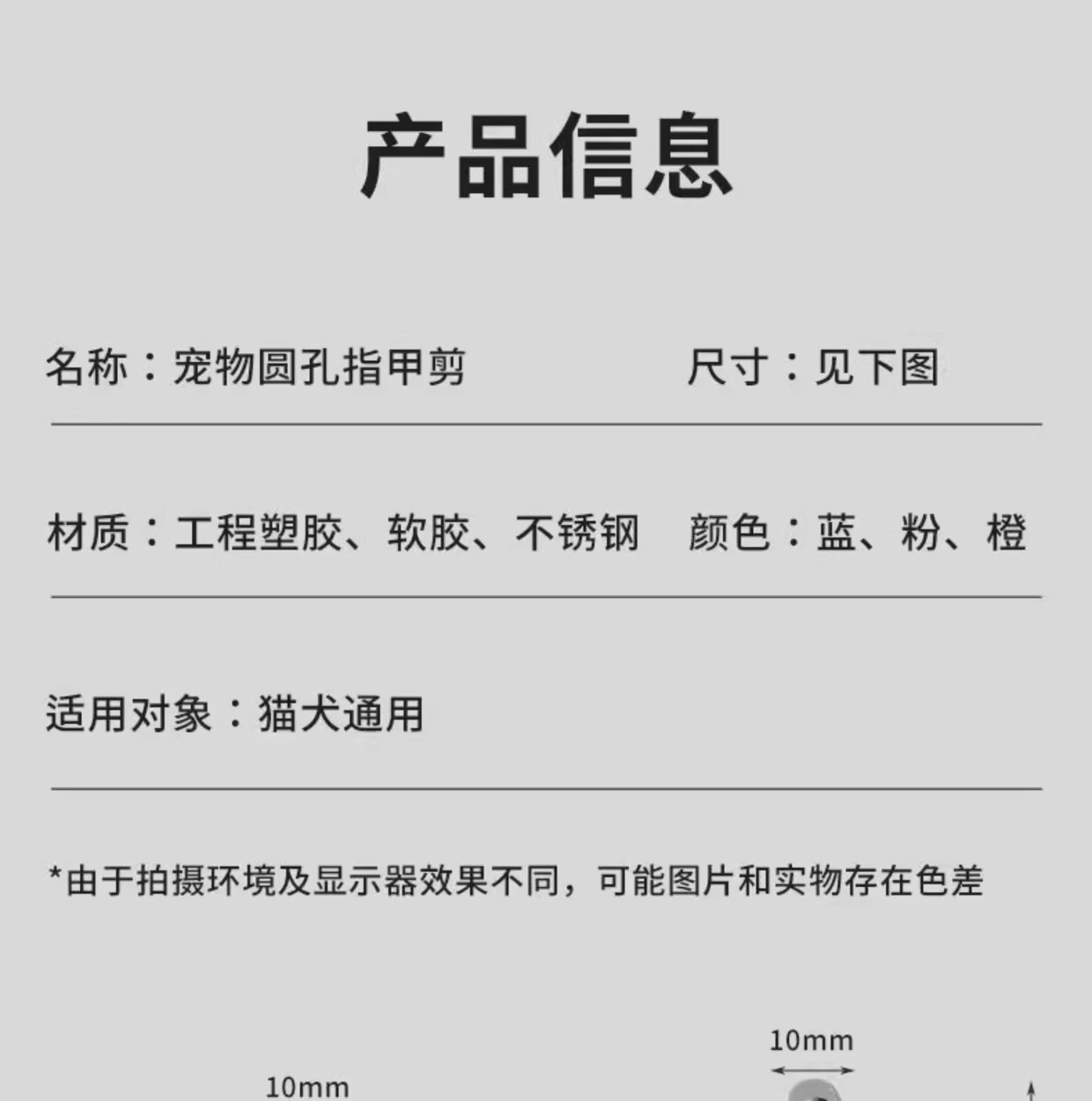 猫専用爪切りステンレスペット小盲切り猫爪切り丸穴爪切り猫犬ペット用品