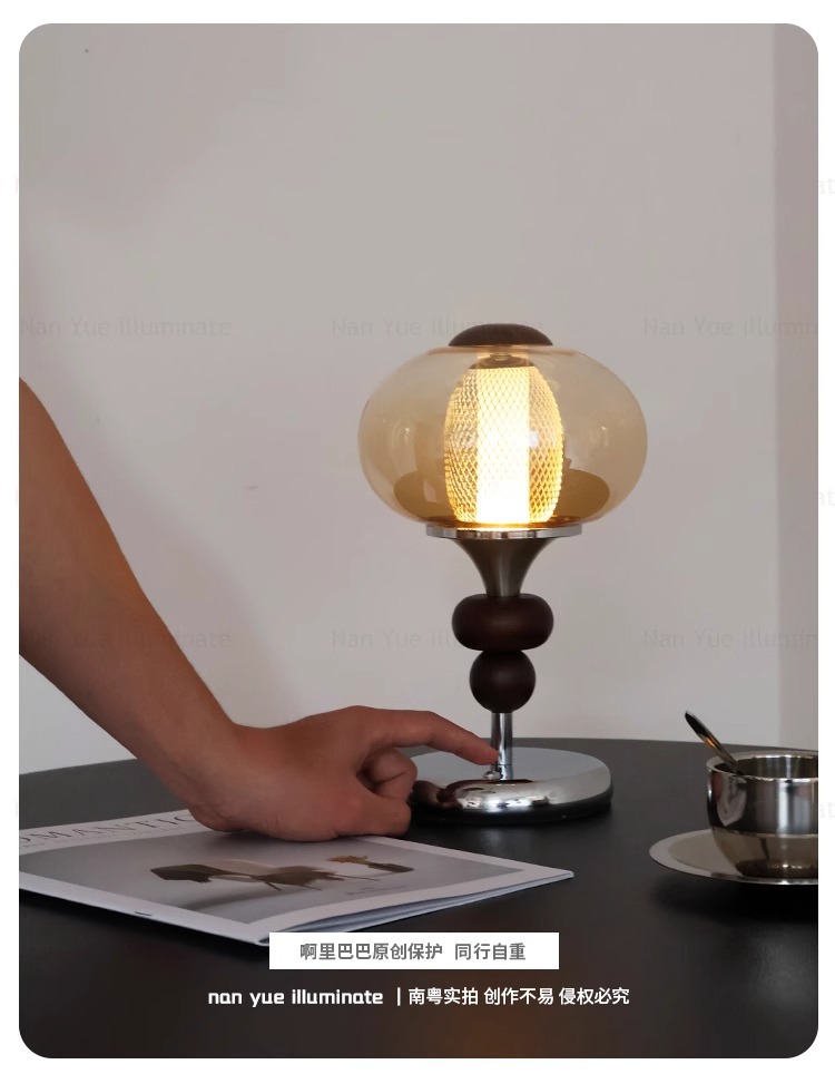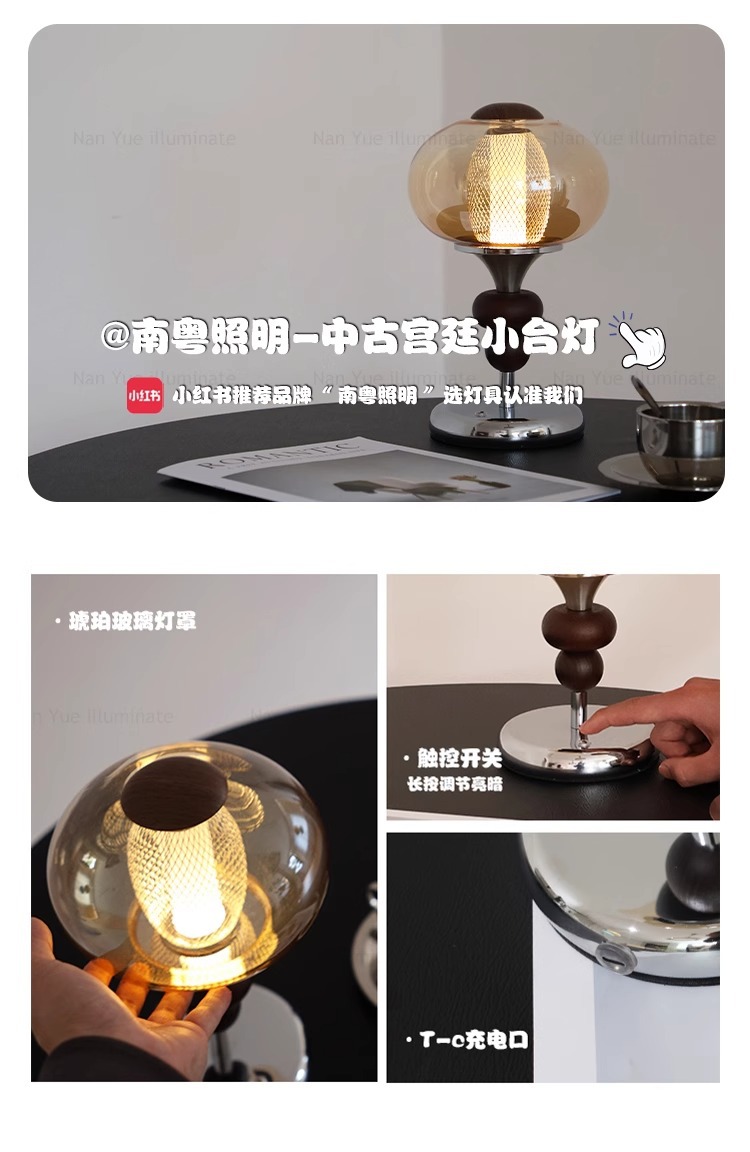 中世無垢材宮殿テーブルランプ充電式タッチスイッチ研究寝室のベッドサイドランプ装飾的な雰囲気の夜の光