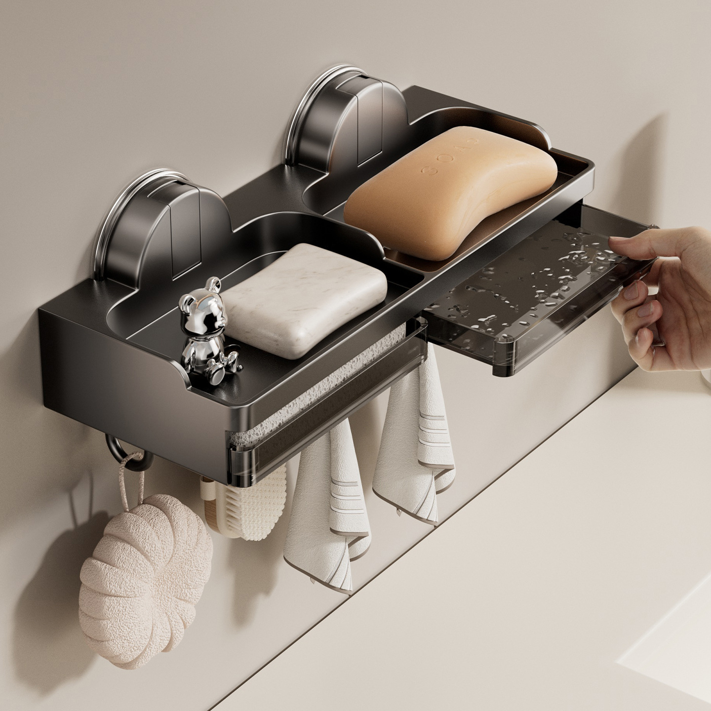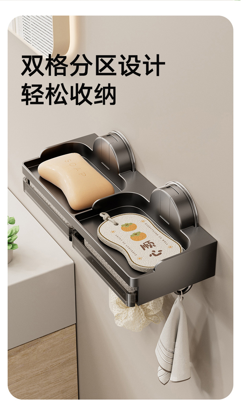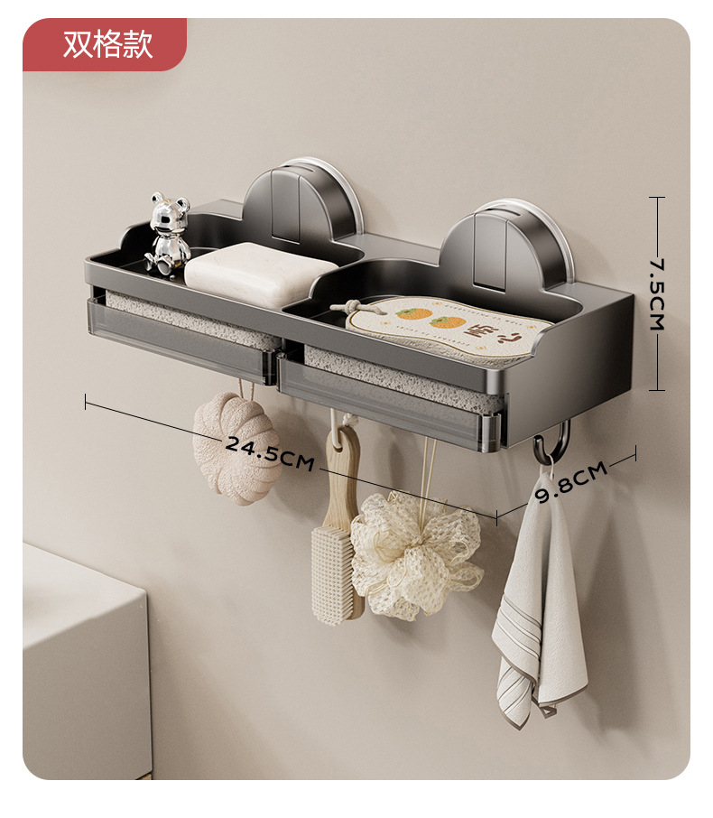 吸盤家庭用高級水切り石鹸棚石鹸ケース浴室トイレ壁掛け式二重穴なし棚