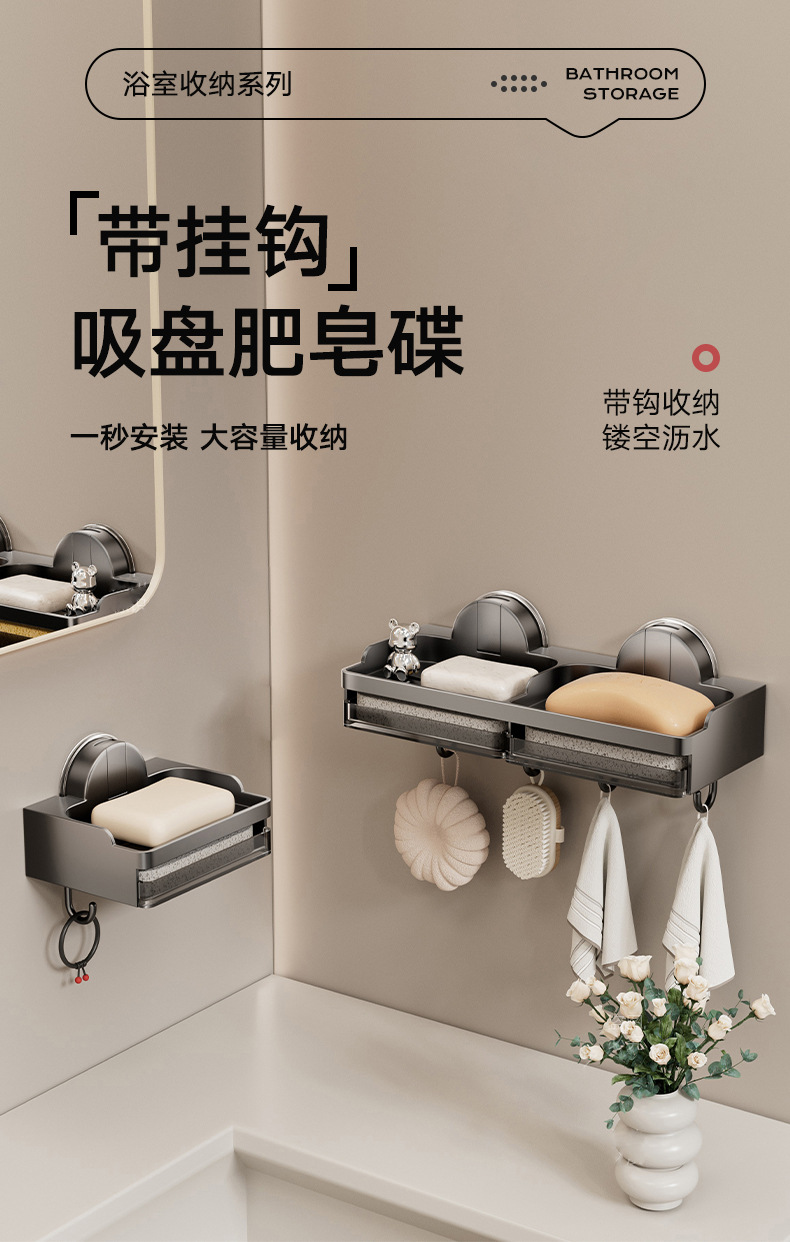 吸盘肥皂盒卫生间免打孔香皂沥水盒壁挂式浴室肥皂收纳置物架家用