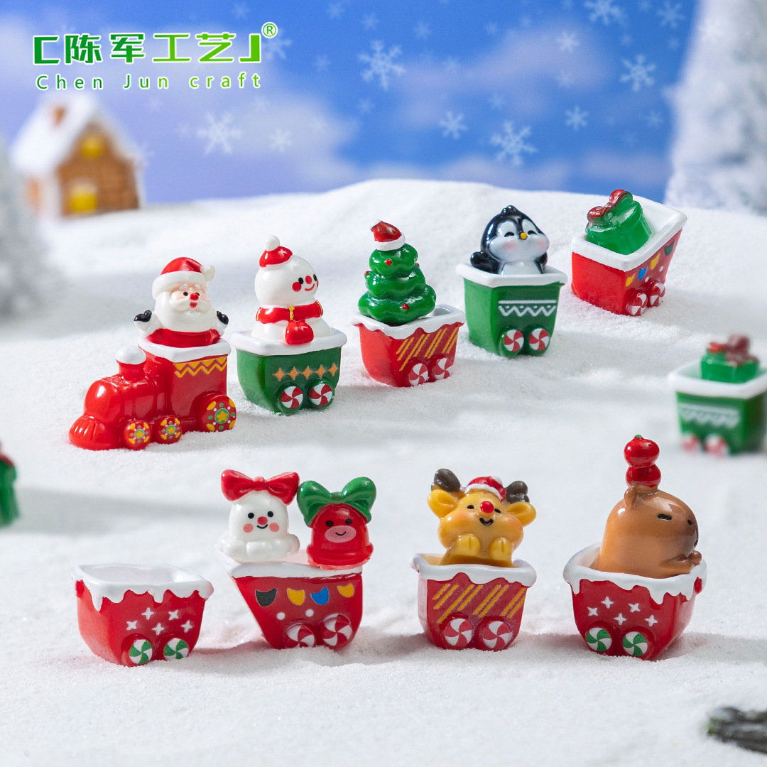 微景观创意圣诞小动物雪人火车 DIY装饰品挂配件水晶球造景小摆件