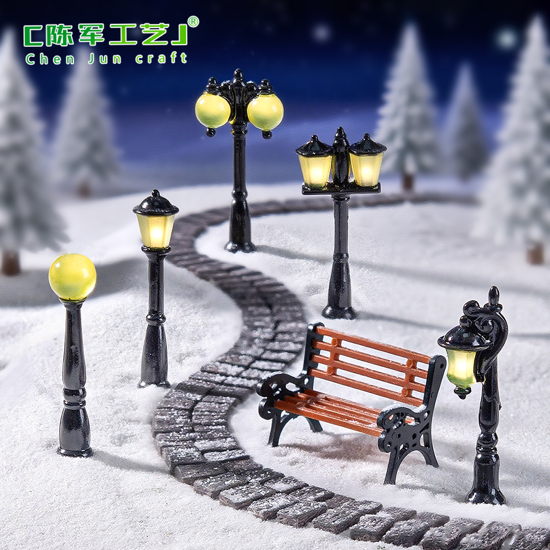 微景观仿真发夜光路灯模型 DIY装饰品配件沙盘场景造景微缩小摆件