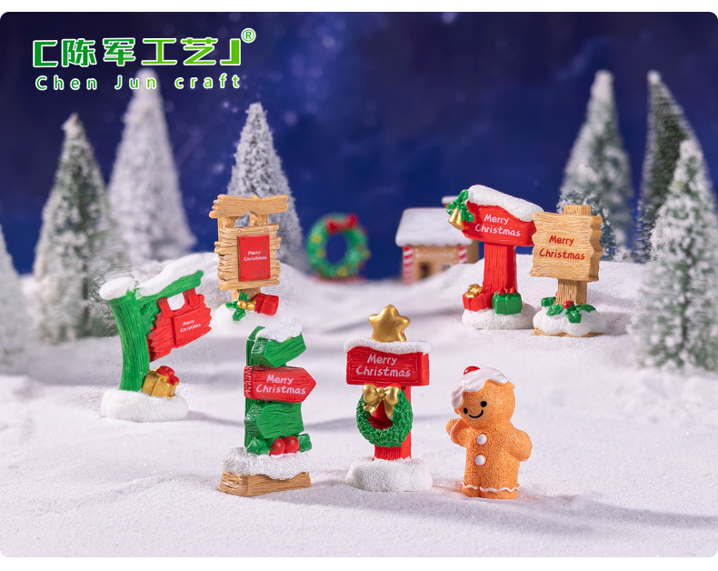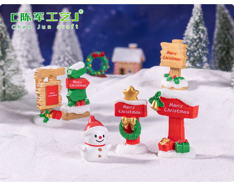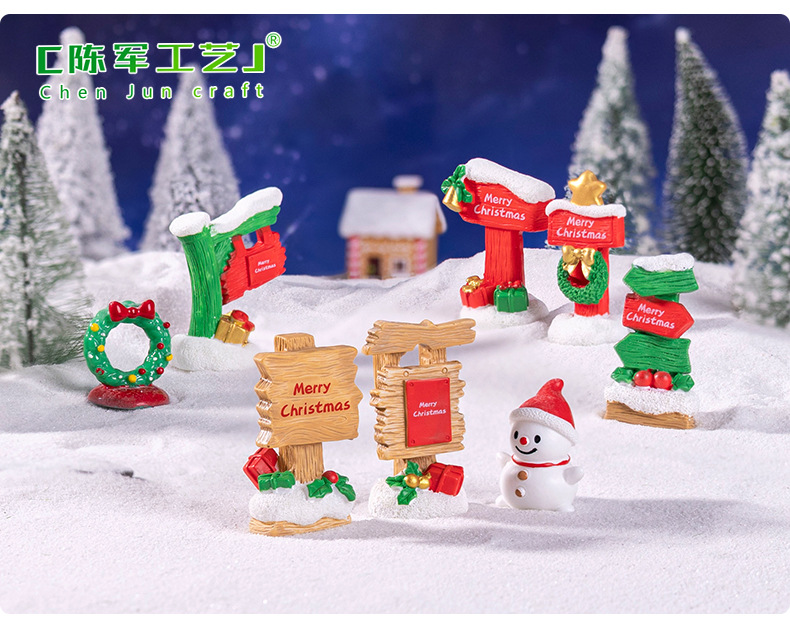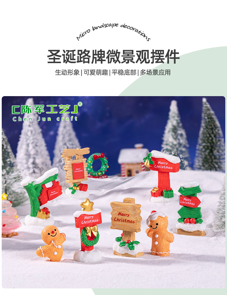 跨境货源微景观创意圣诞路牌 DIY材料装饰品挂配件节日造景小摆件