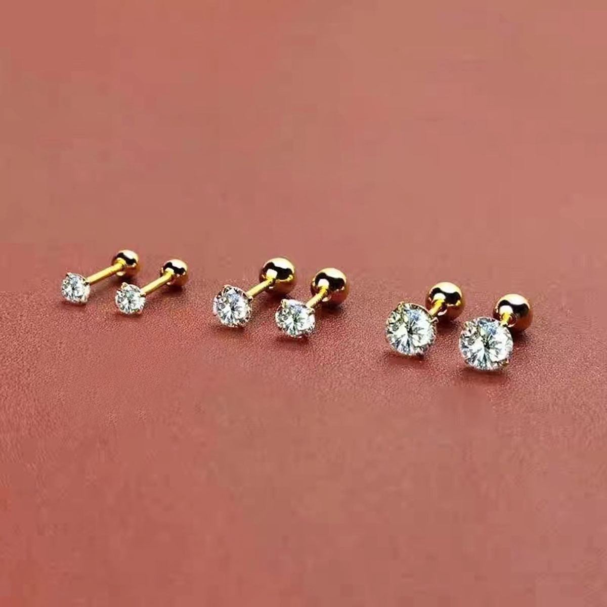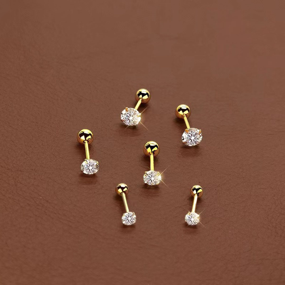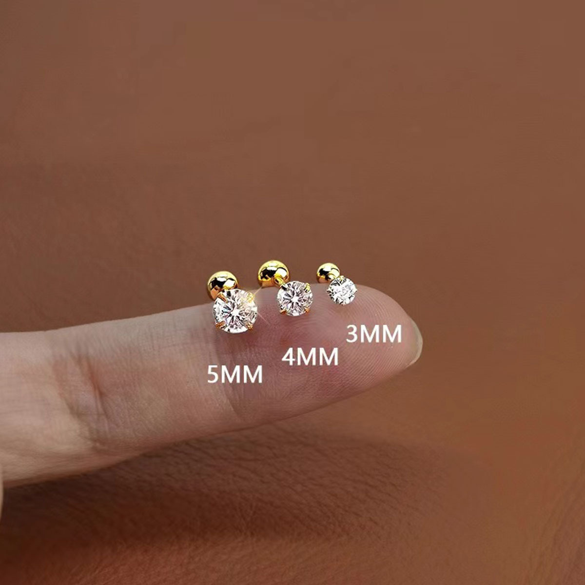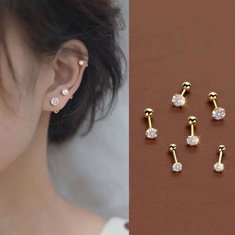 s925 針ジルコン スクリュー イヤリング バックル、ピアス用、就寝時にイヤリングを外す必要はありません、女性の低刺激性の新しい小さなイヤリング