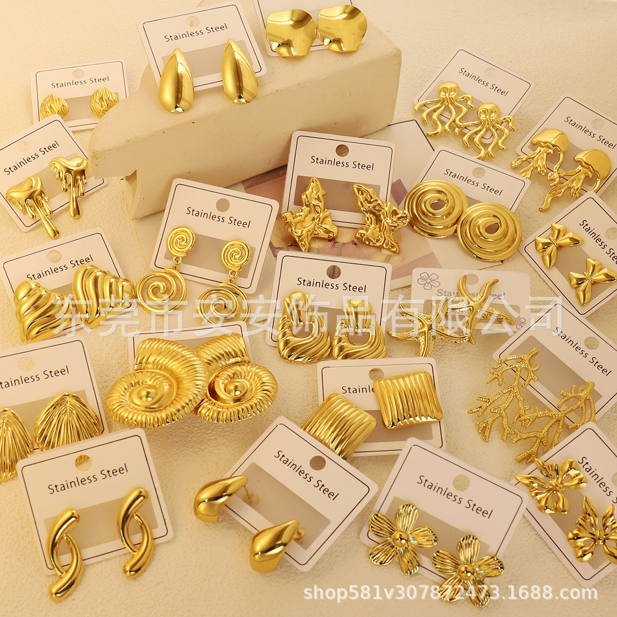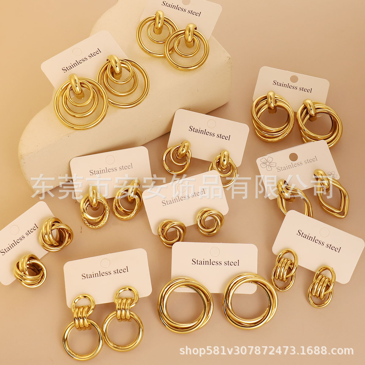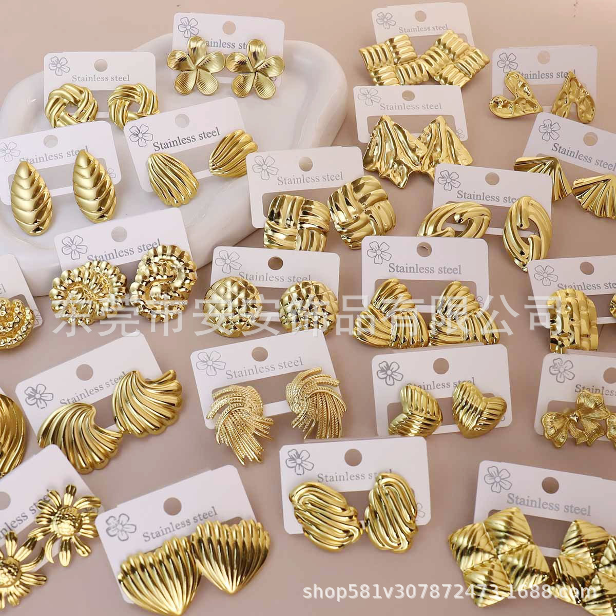 クロスボーダー高級レトロイヤリング ステンレス製 幾何学模様 不規則イヤリング 18Kゴールドメッキ 色褪せないイヤリングアクセサリー