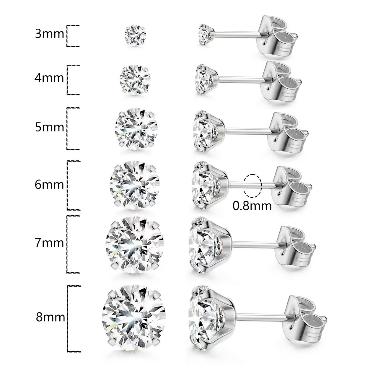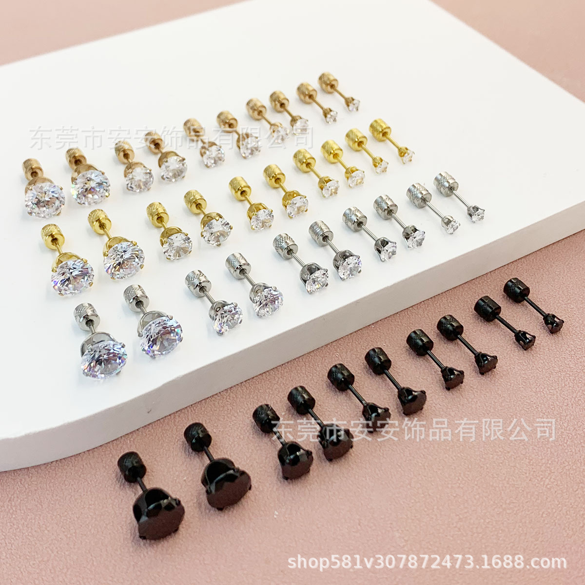 クロスボーダーファッション316ステンレスイヤリングクラウン六爪ラウンドジルコンイヤリングセット卸売男女兼用