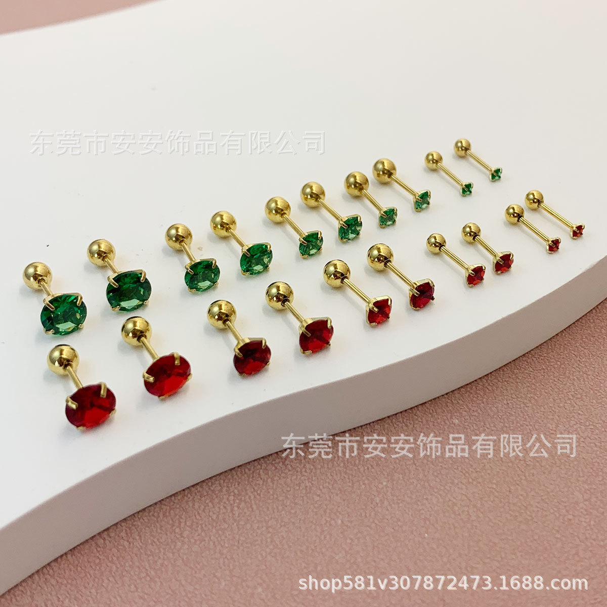赤と緑のジルコンイヤリング6mm、定番人気の男女兼用チタン鋼イヤリング、卸売販売。