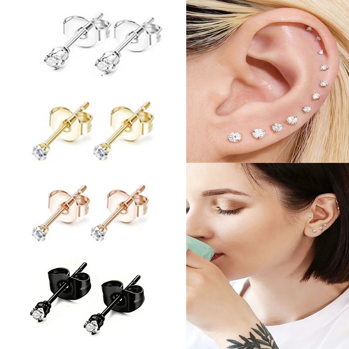 クロスボーダー ステンレス製ピアス ダイヤモンド付き 2mm 四爪ジルコン クラシックスタイル 男女兼用 幾何学模様