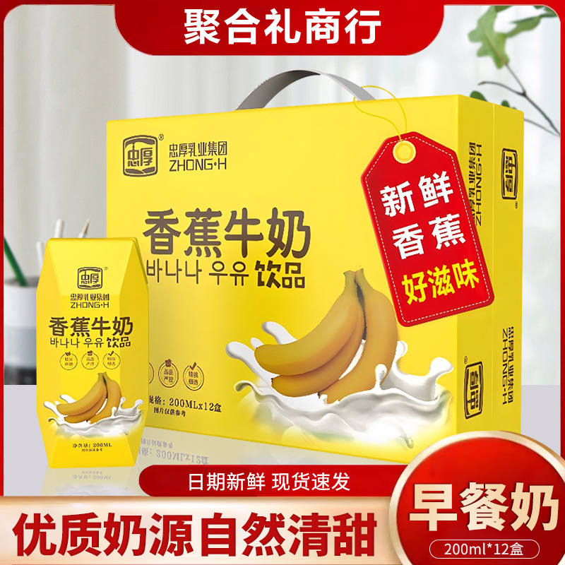 忠厚香蕉牛奶200ml*12盒学生早餐奶饮料成人风味新鲜营养饮品整箱