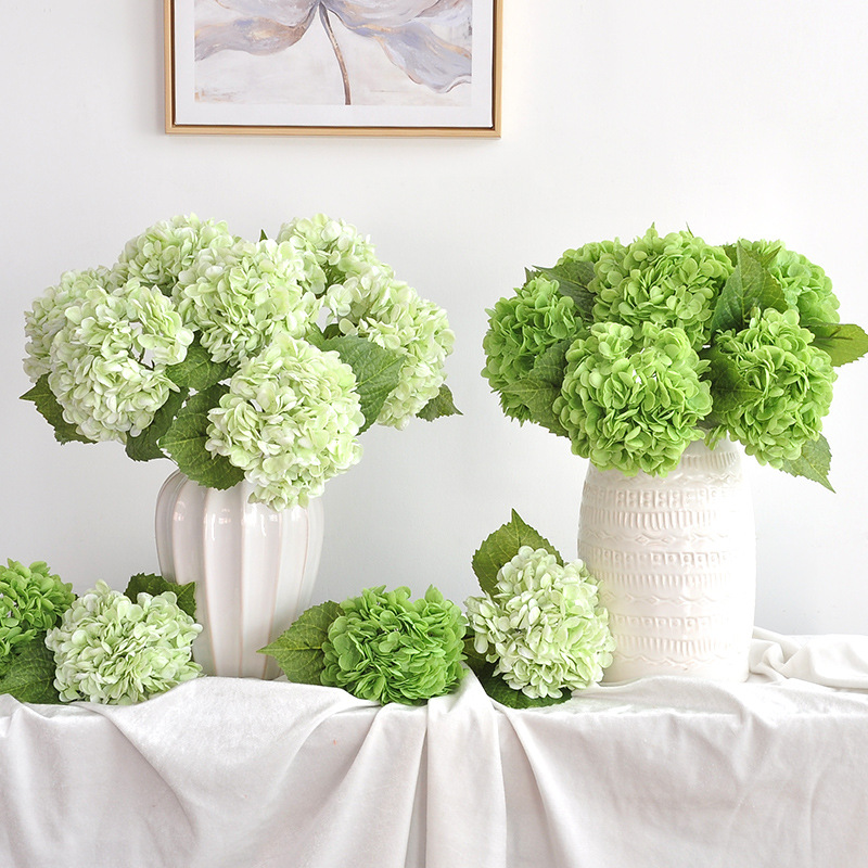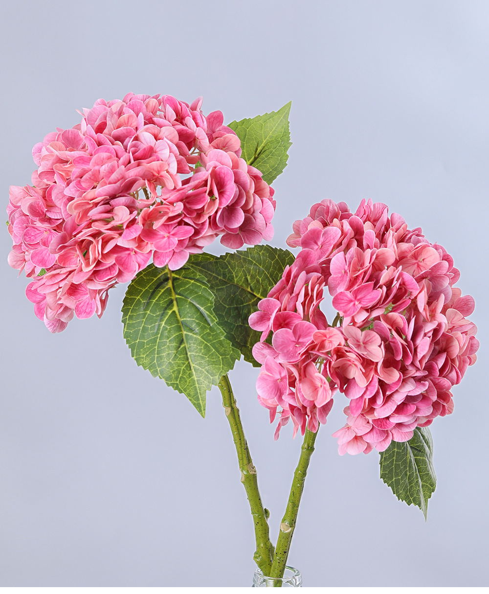 2 葉の高品質保湿アジサイハイエンドリアルな造花ホテル人工結婚式の花の装飾造花