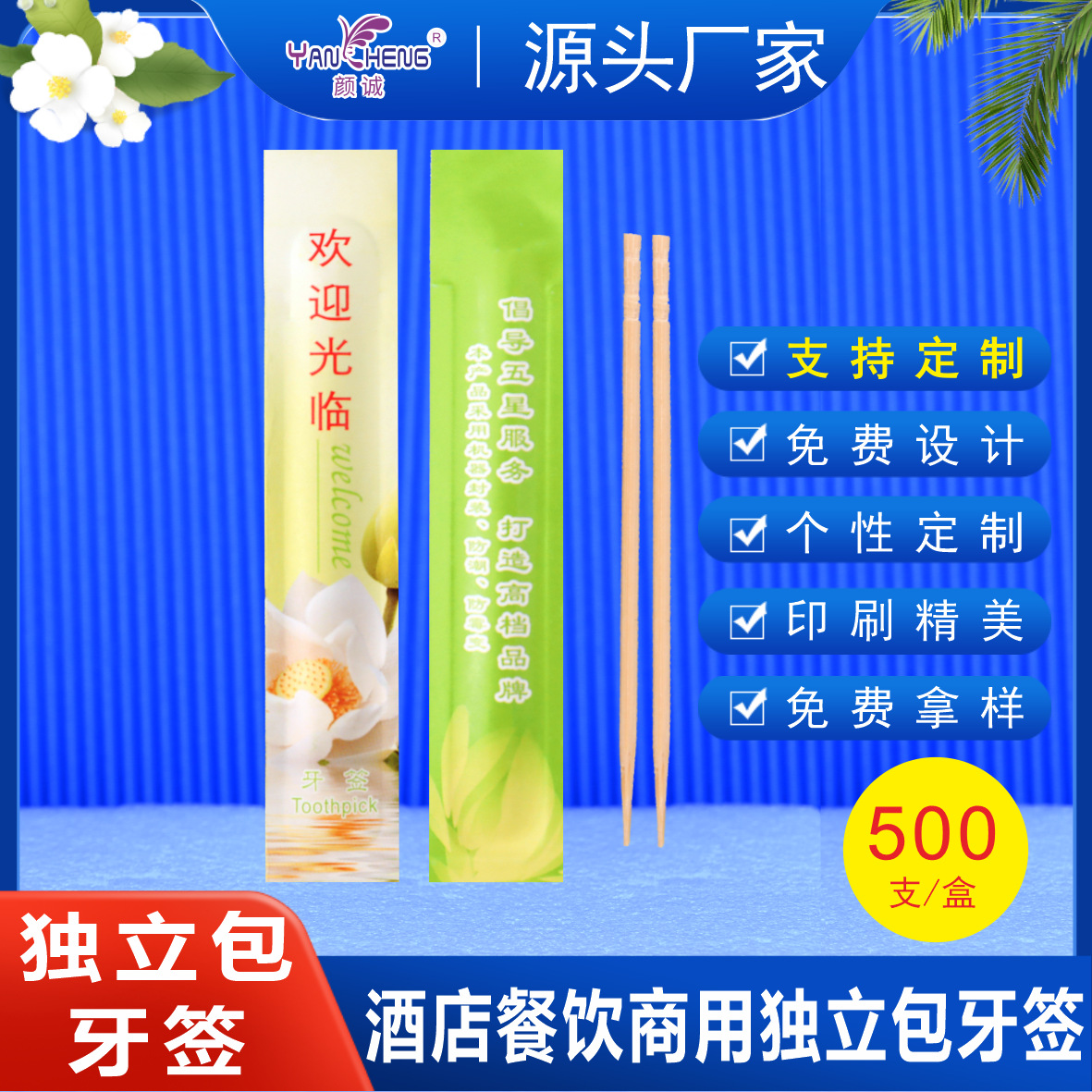 口腔清掃用ホテル・レストラン・飲食店専用つまようじ ダブルシングルヘッド高品質個別包装使い捨てつまようじ