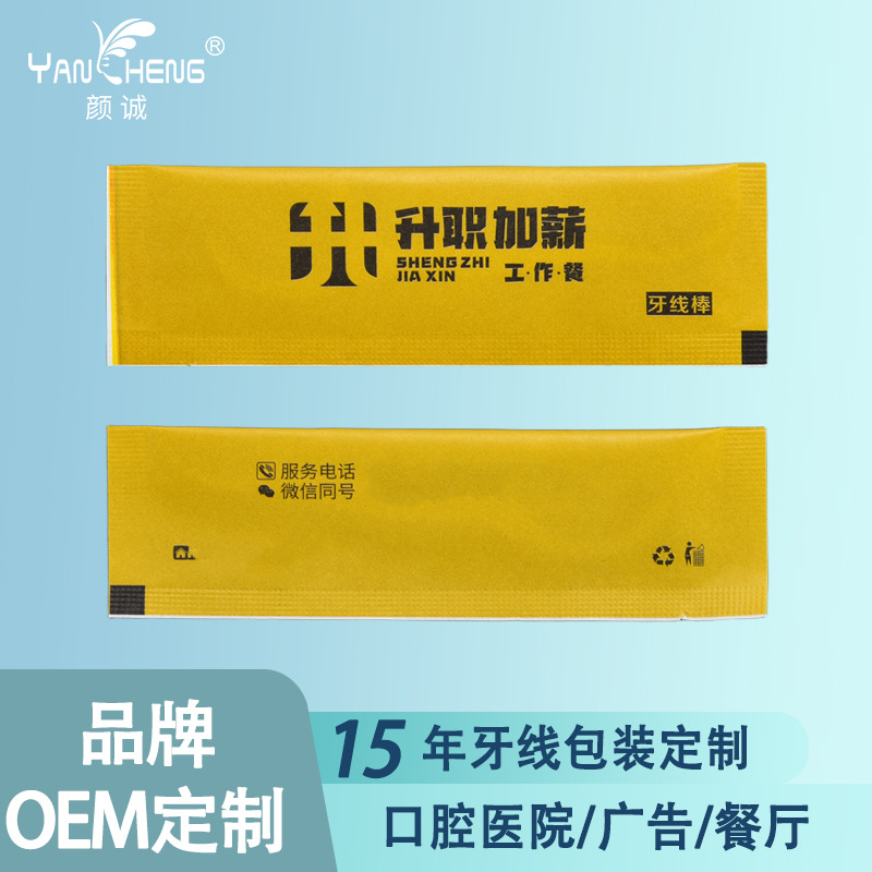ホテルやレストラン向けの使い捨て独立袋入りデンタルフロススティック、ロゴ入り高精細パターンのカスタマイズデンタルフロス