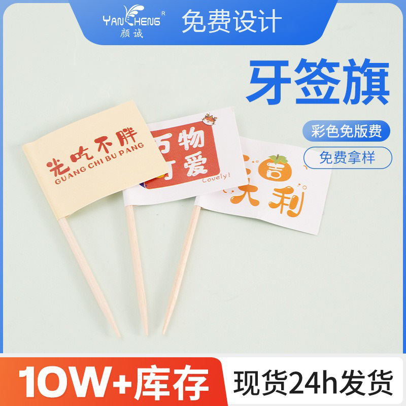 現物卸売りネット紅楊枝挿し旗創意logo印刷楊枝旗カクテル装飾小旗オーダーメード