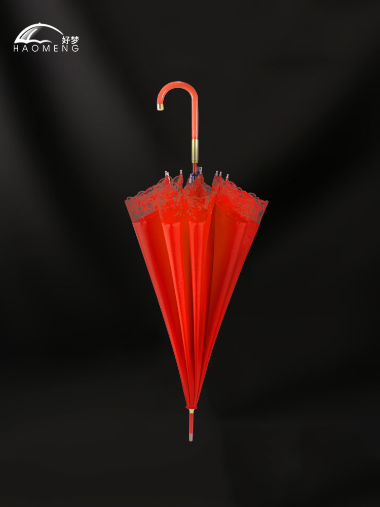 お祝いの結婚式の傘、花嫁の傘、大きな赤い赤い傘、長い柄のレースのレトロな中国の結婚式の傘