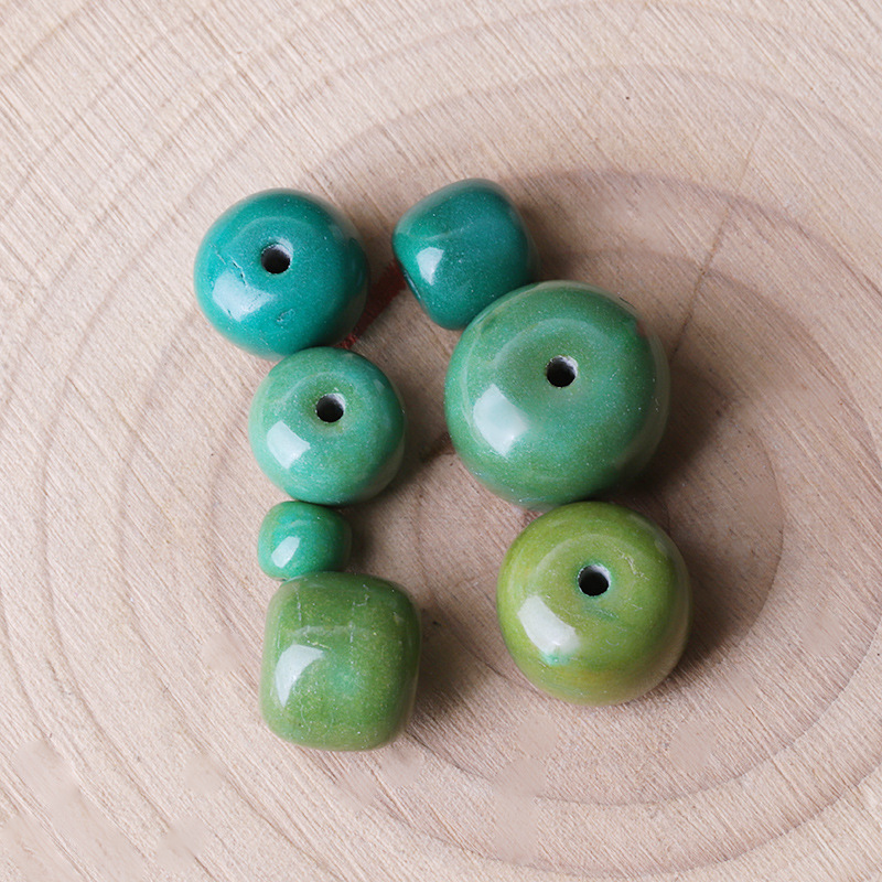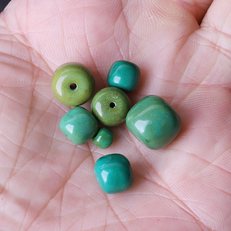 原矿绿松石老型珠隔珠散珠diy手链手串隔珠文玩配饰星月菩提配件