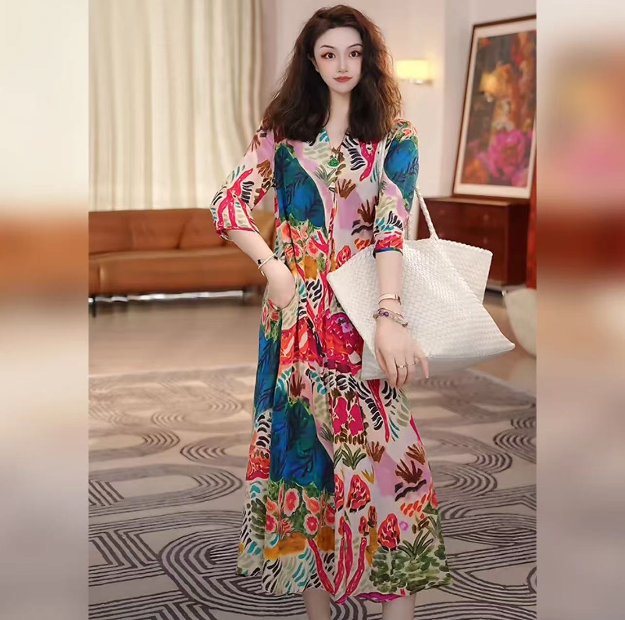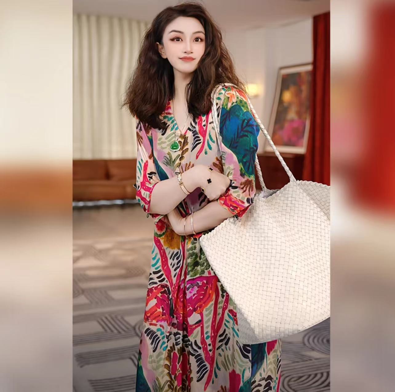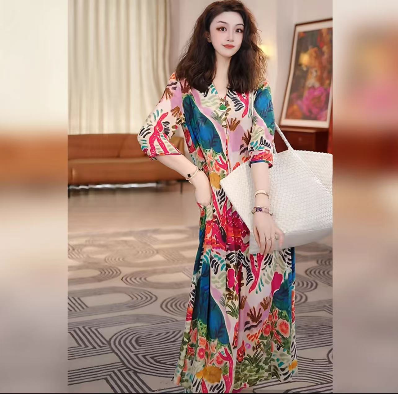 nwy8369 ファッションレトロプリントドレス女性のための 2025 夏の新しい気質エレガントで多用途の通勤ロングスカート