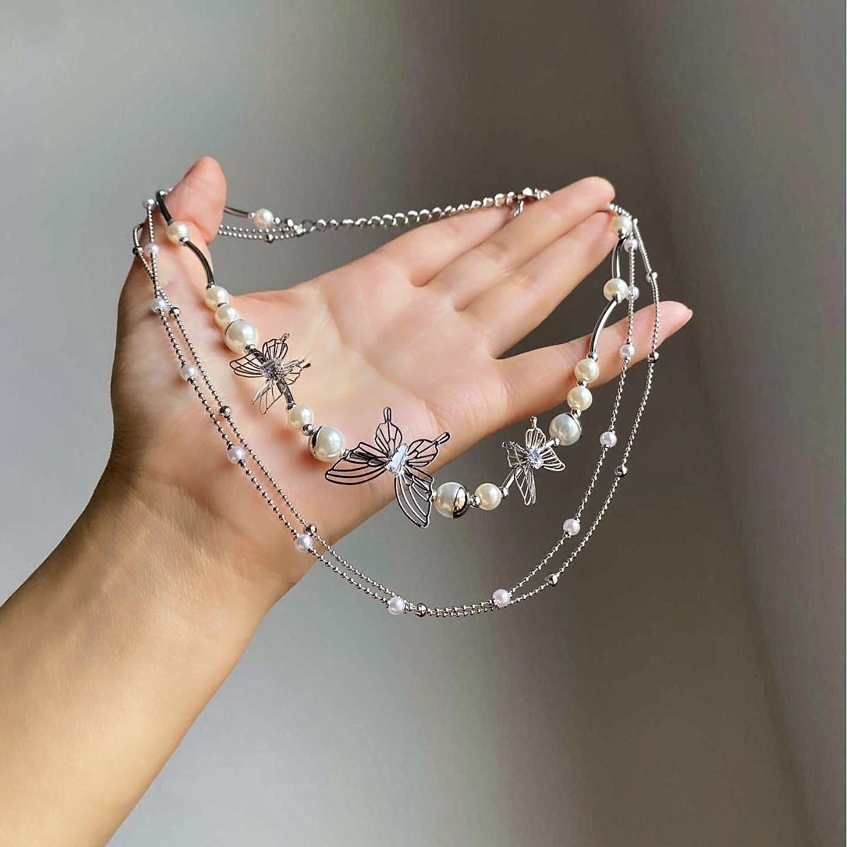 极繁法式轻奢蝴蝶锆石珍珠项链小众时尚锁骨链辣妹个性甜酷风饰品