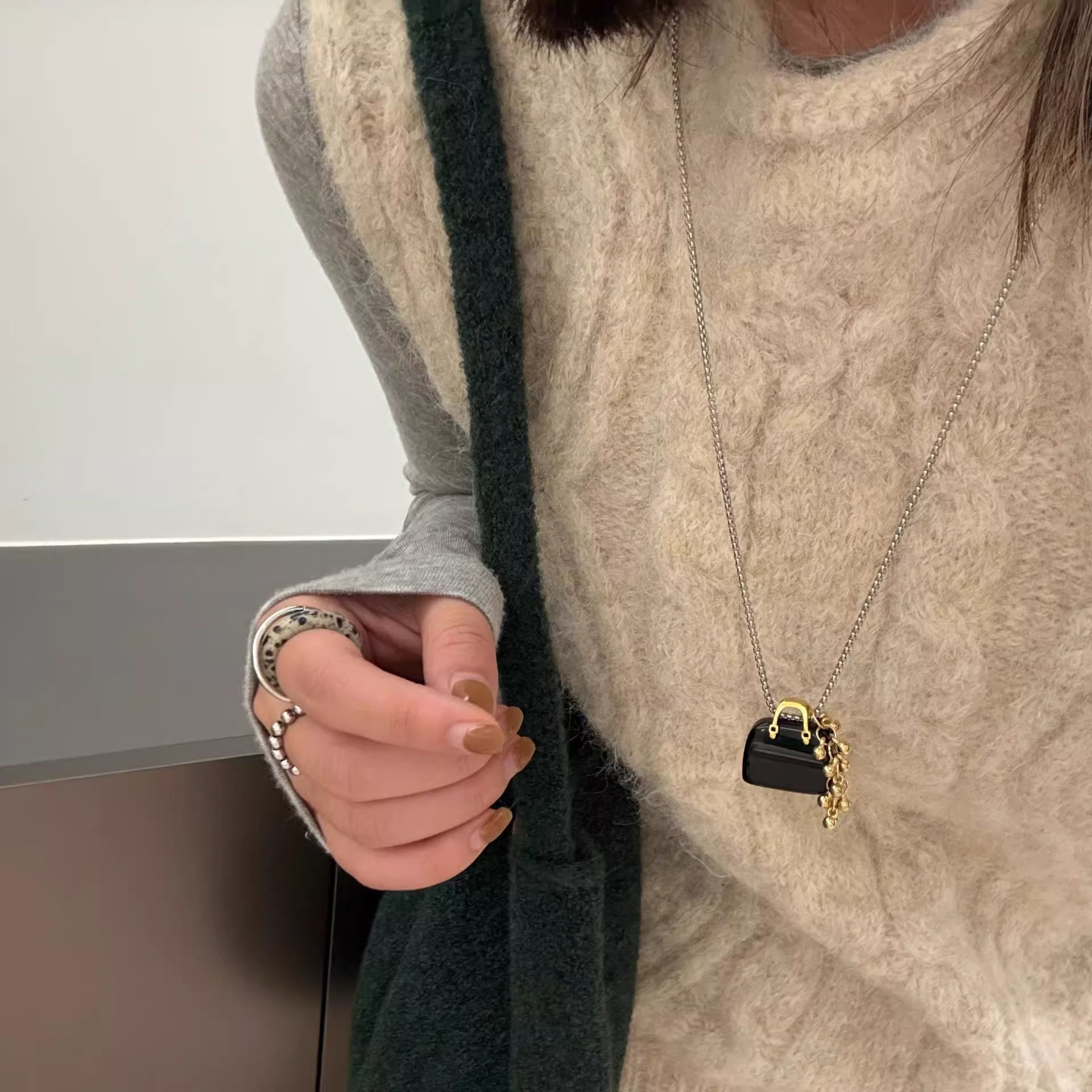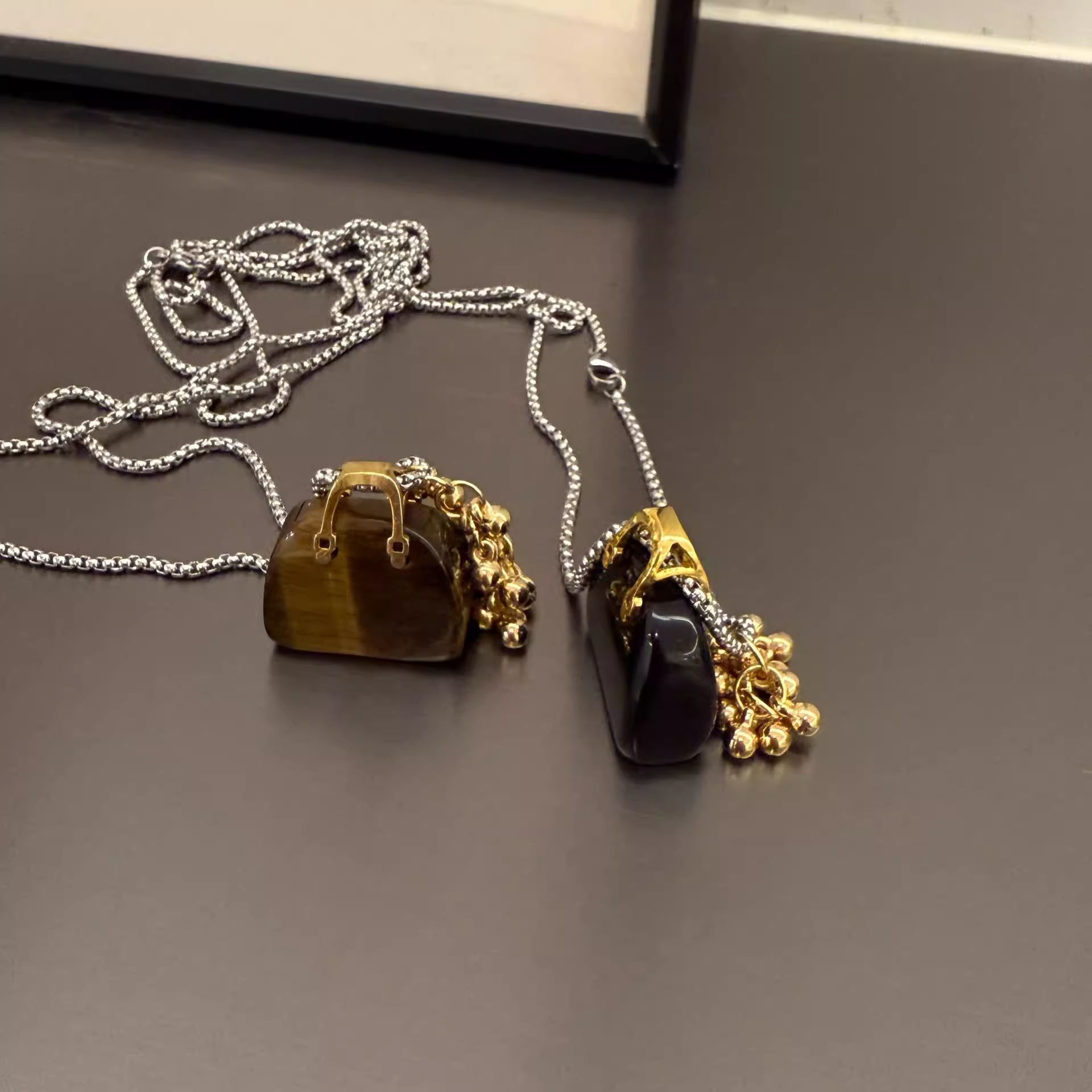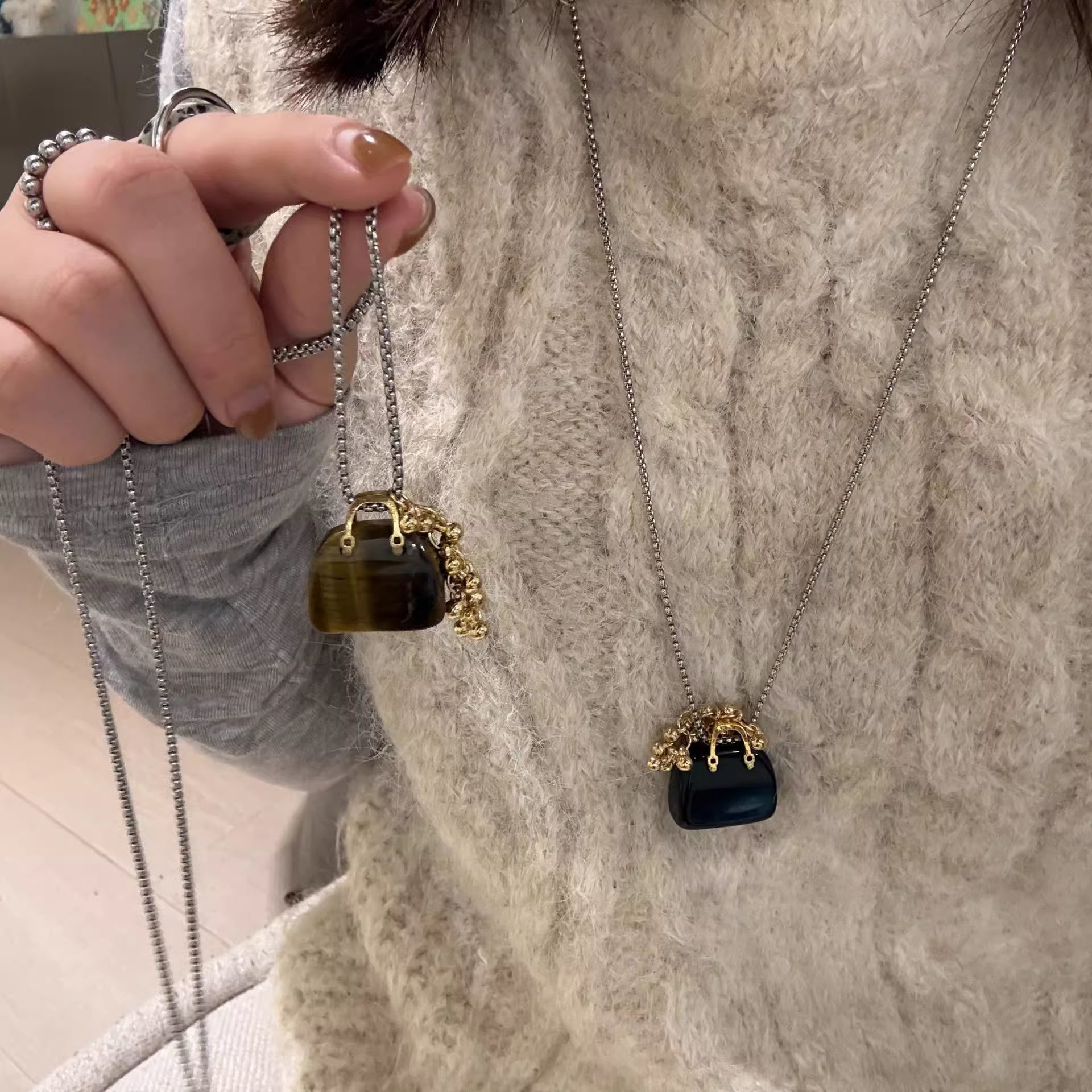 チタン鋼タイガーアイストーンロングネックレスレディースサマーニッチハイエンドセーターチェーン天然石ブドウストリングペンダントメンズ