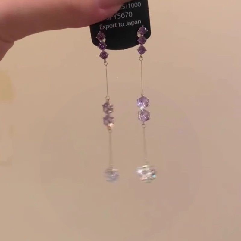 「ラベンダーパラダイス」フォレストパープルジルコンタッセルイヤリング2025新しいファッション多用途ライト高級イヤリング女性用