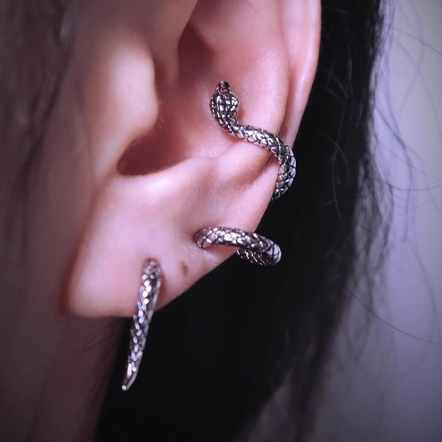 辰年ユニークなハイエンドイヤークリップヨーロッパとアメリカのレトロなヘビ型シルバー針イヤリングパーソナライズされたファッショナブルな女性用の新しいイヤリング