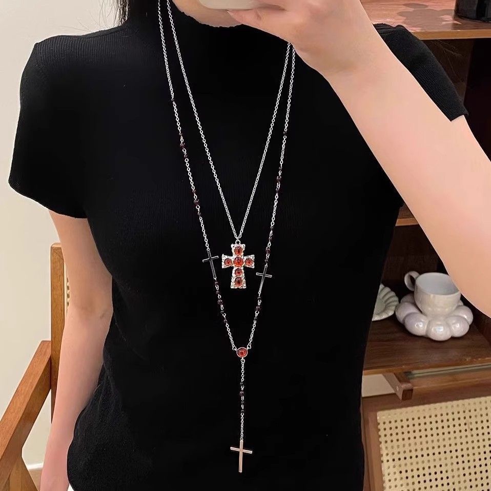 甘くてクールなホットガールクロス多層ビーズネックレス女性のレトロパンクハイエンドニッチ鎖骨チェーンネックレス