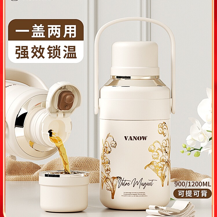 铃兰大容量保温杯女2025新款不锈钢婴幼儿童水壶泡茶水杯子