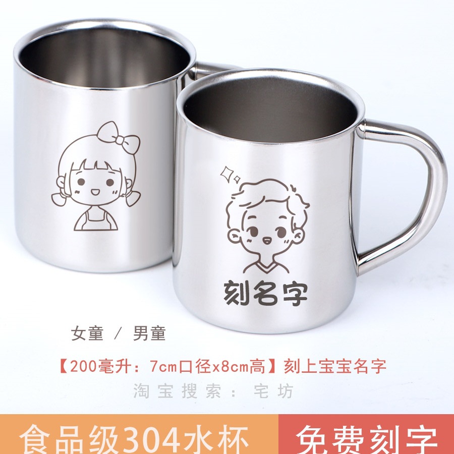 幼儿园水杯儿童双层防烫喝汤杯刻字小孩口杯食品级304不锈钢水缸
