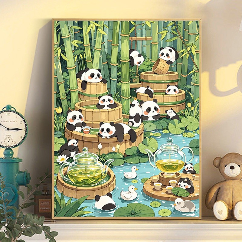 デジタル油絵 diy 着色絵画充填着色子供パンダ手描きアクリル油絵