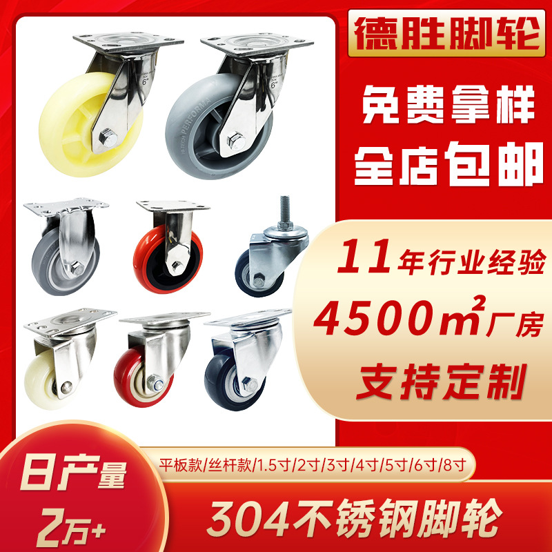 304ステンレス鋼万能輪TPR静音輪工業設備大型pp輪ポリウレタン固定輪金ドリルキャスター