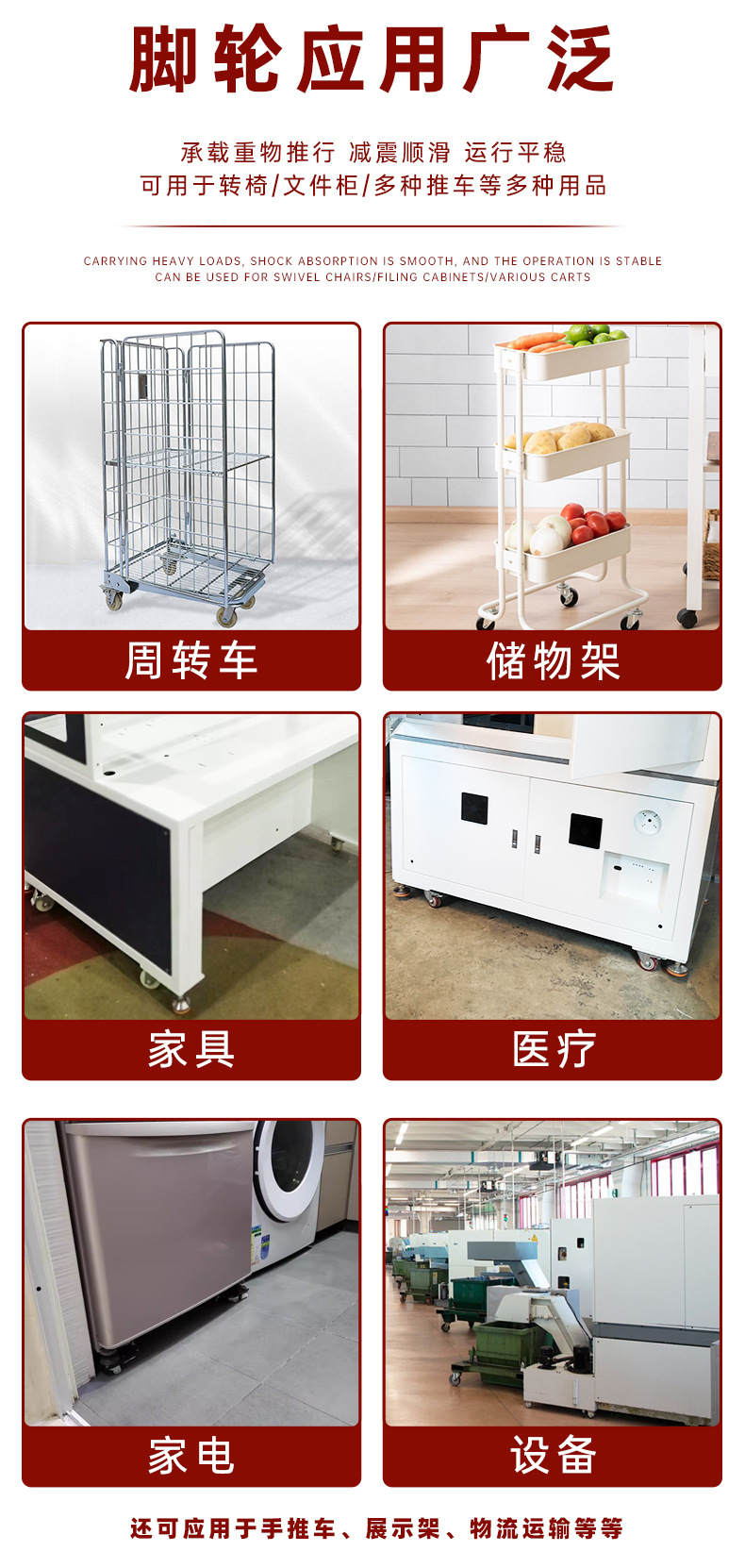 万能車輪重さ56インチナイロン移動押しトレーラー棚3インチTPR静音輪ブレーキ付きウレタンキャスター