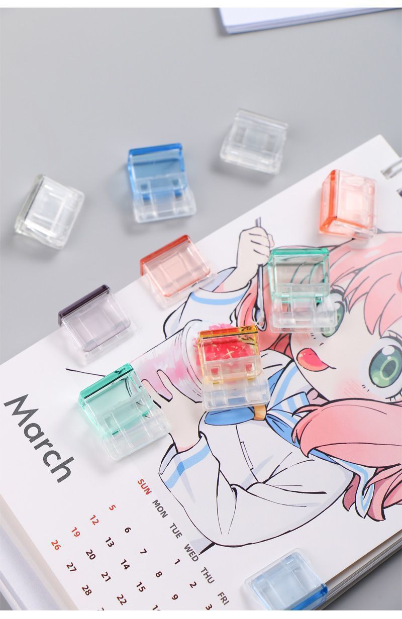 キャンディーカラーのプッシュクリップ透明カラー多機能オフィスファイルクリップ学生テスト用紙データストレージ固定クリップ
