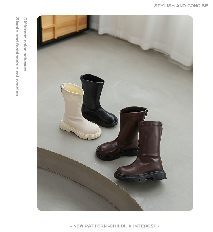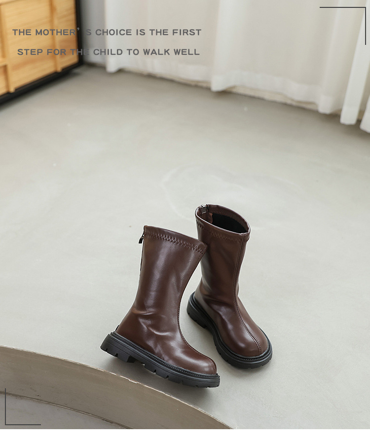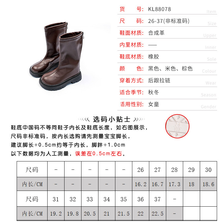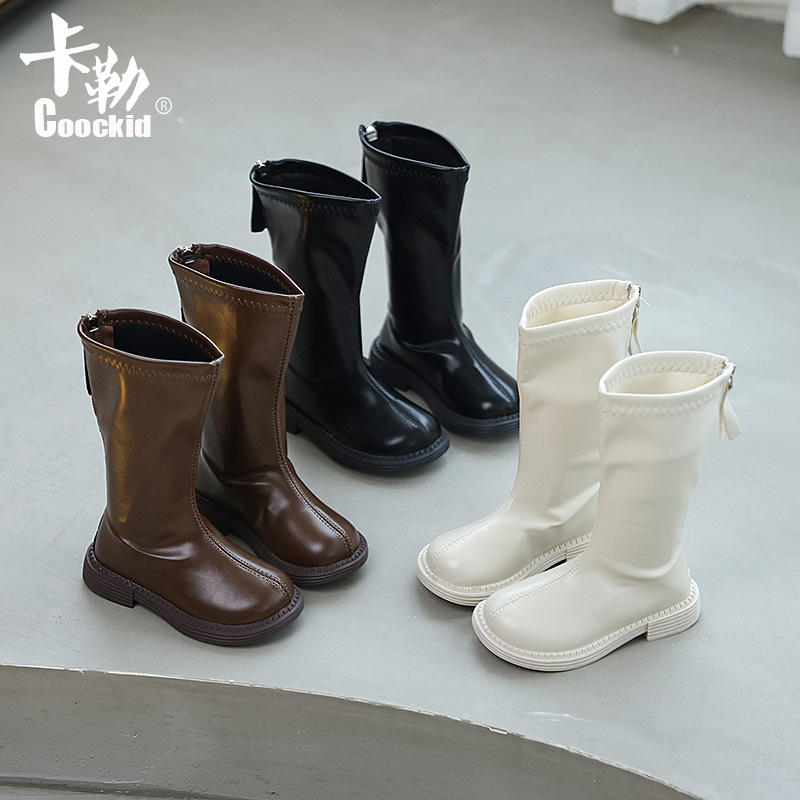女宝小香风中筒靴秋冬新款时尚靴子中大童不过膝瘦瘦靴女孩马丁靴