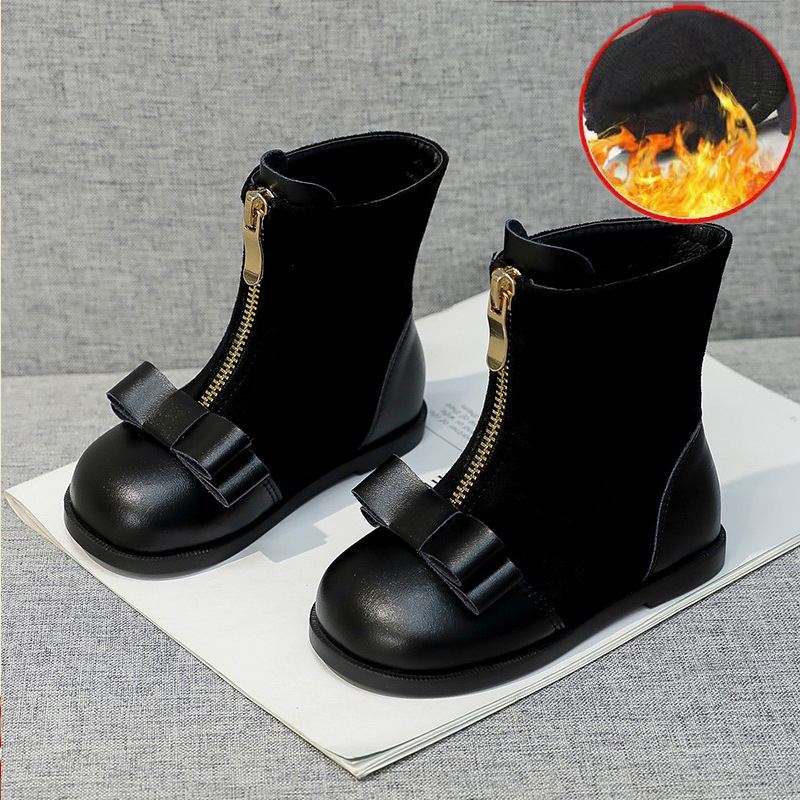 男童马丁靴2025冬季新款儿童加绒短靴女童雪地棉靴保暖黑色皮靴潮