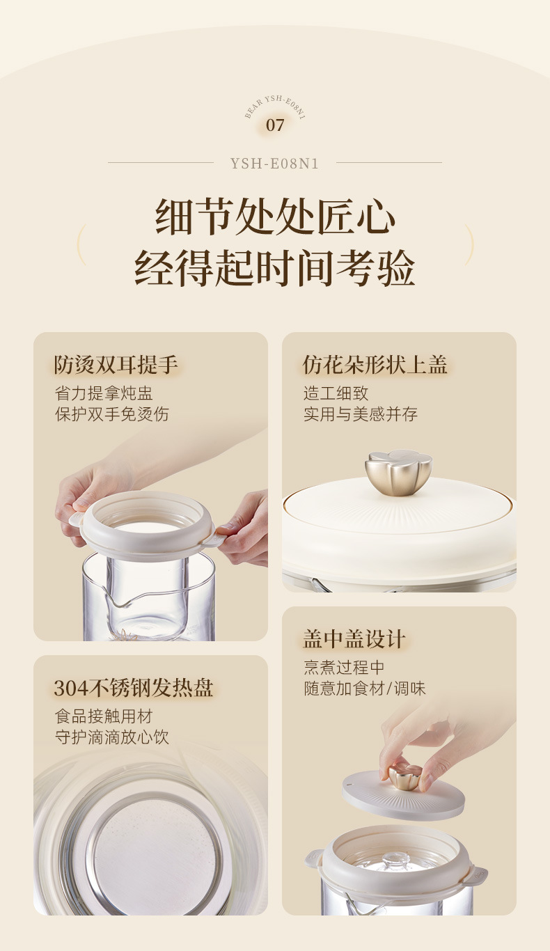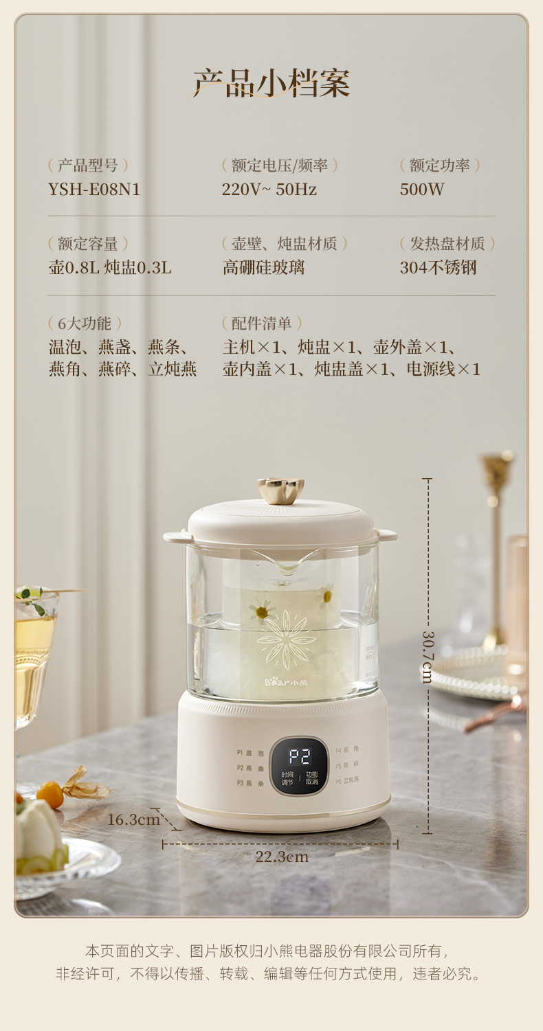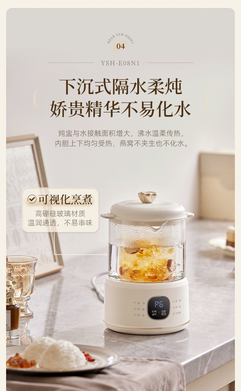 リトルベア健康ポット 0.8 リットルホームオフィス高ホウケイ酸ガラススマート多機能電気ケトルティーポット