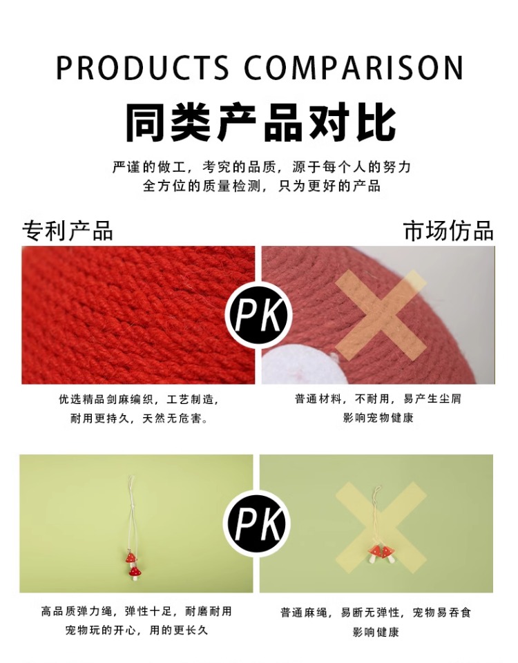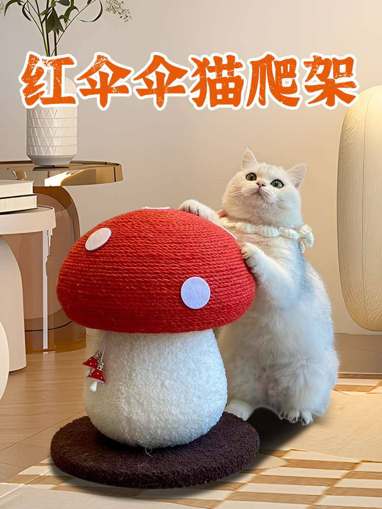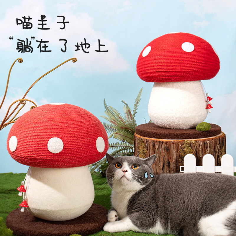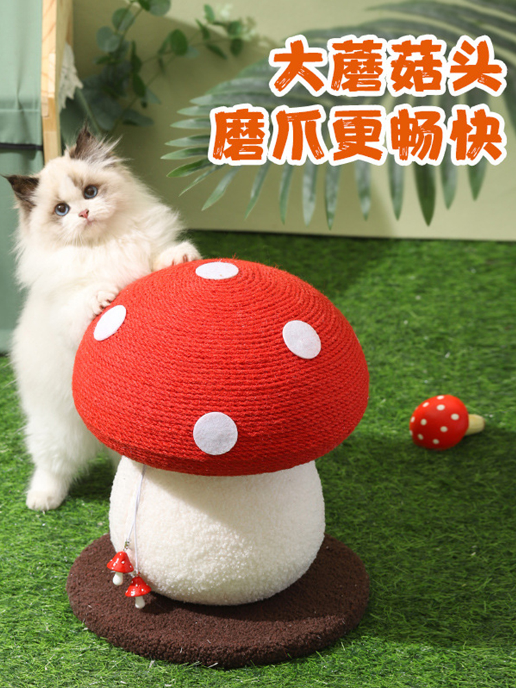 赤いキノコ猫スクラッチボードサイザル麻ロープ猫クライミングフレーム猫スクラッチポール小型耐摩耗性非脱落猫おもちゃペット Zuhong