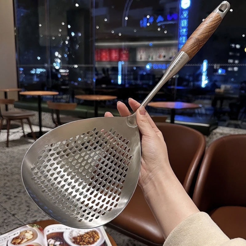 ドイツ製麺ザル、家庭用キッチン用大型長柄ザル、厚みのあるステンレス鋼の一体成型麺調理ネット