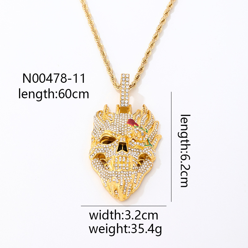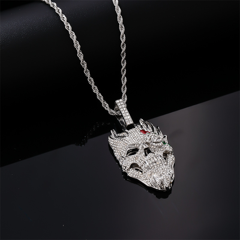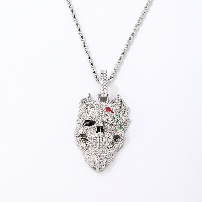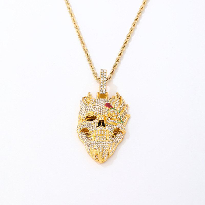 ハロウィンスカルヒップホップネックレスアクセサリーヨーロッパとアメリカのフルダイヤモンド誇張ペンダントパーソナライズされたダイヤモンドがちりばめられたトレンディなキューバチェーン