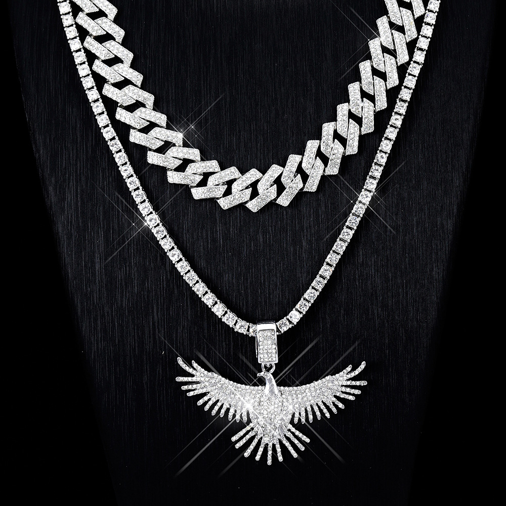 欧米insヒップホップ百合個性雄鷹展翅亜鉛合金満ドリルペンダント潮クール街頭スキューバチェーンセット