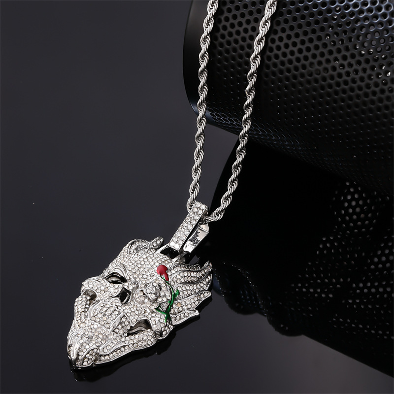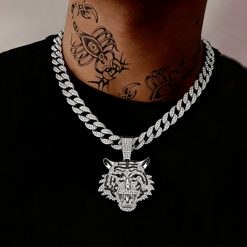 欧米のクロスボーダー新型ヒップホップ創意個性動物ペンダントネックレス個性ヒップホップ風動物豹子頭ペンダント