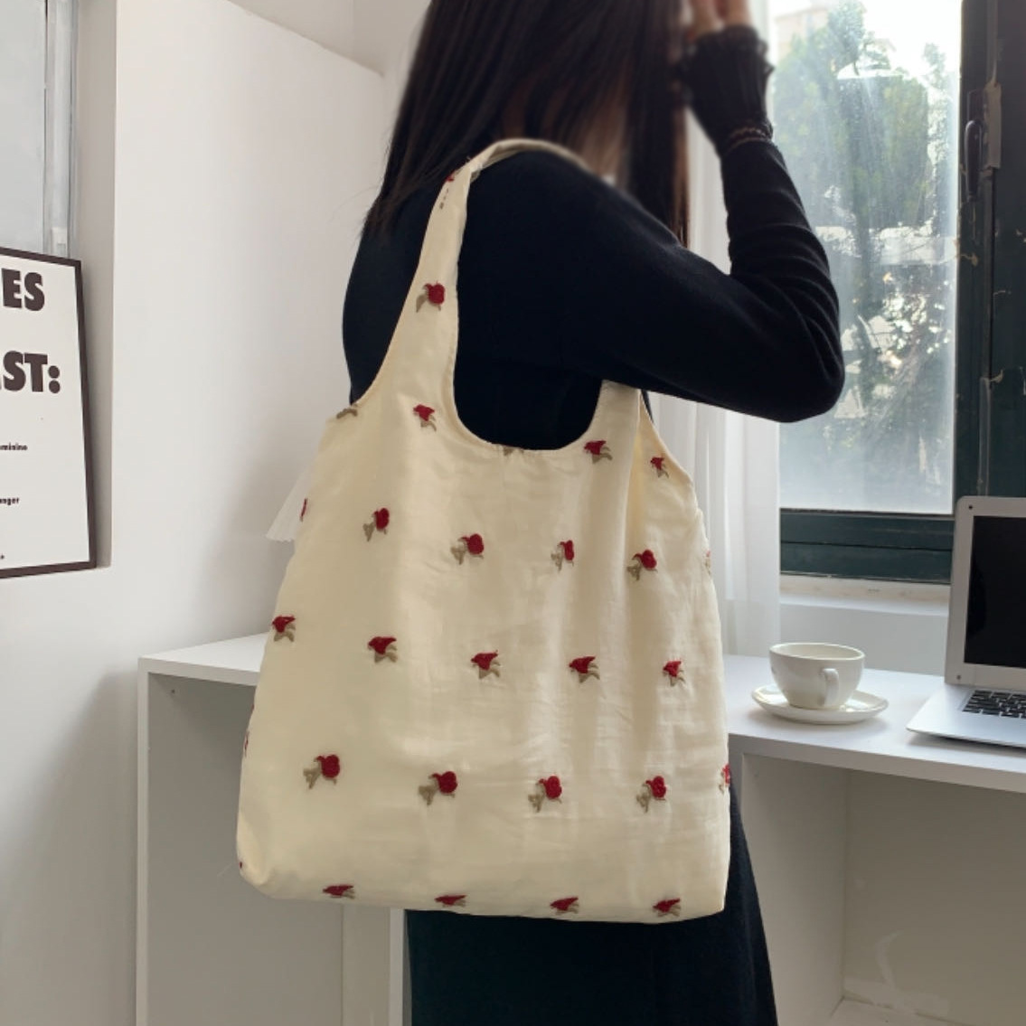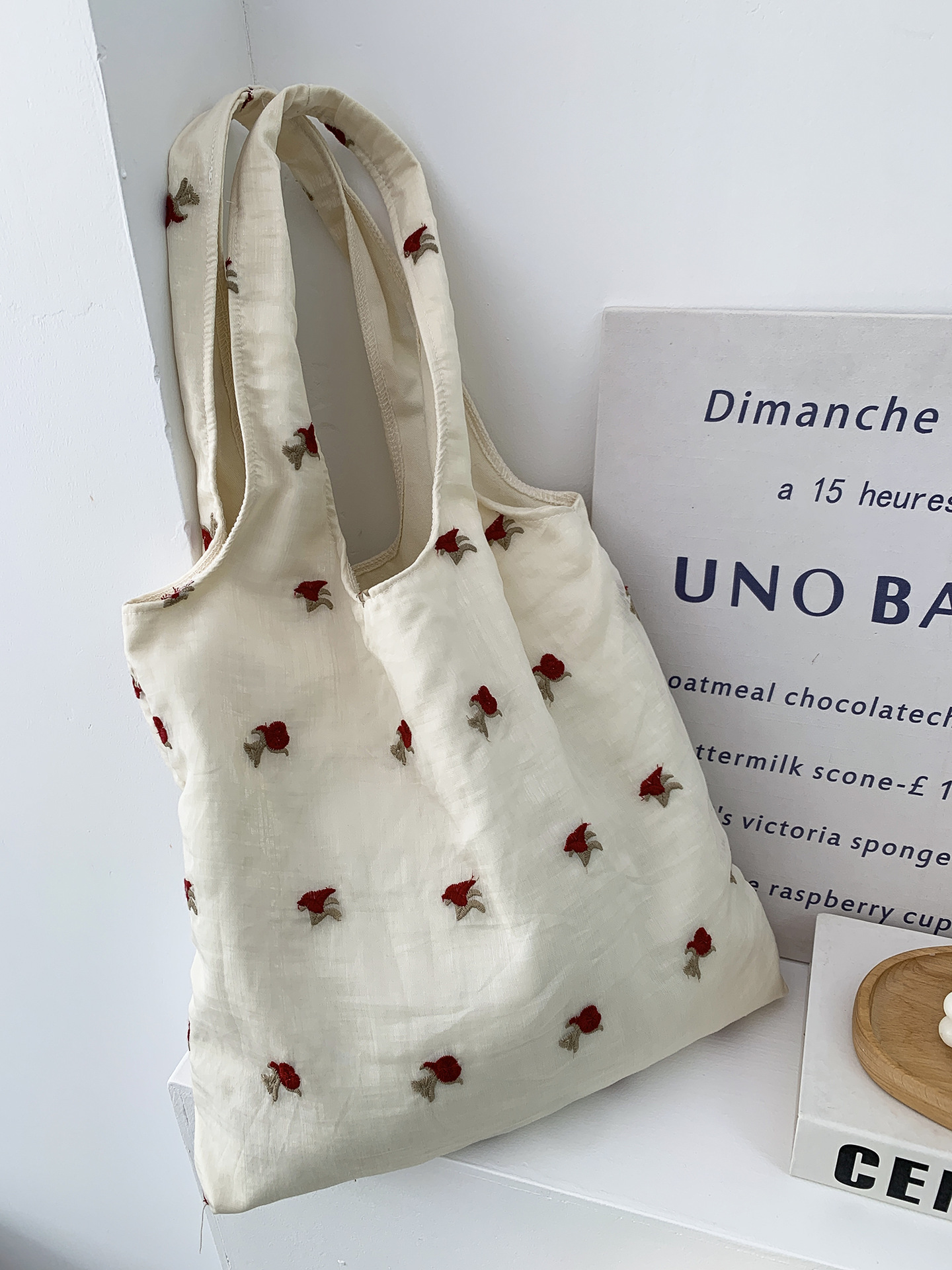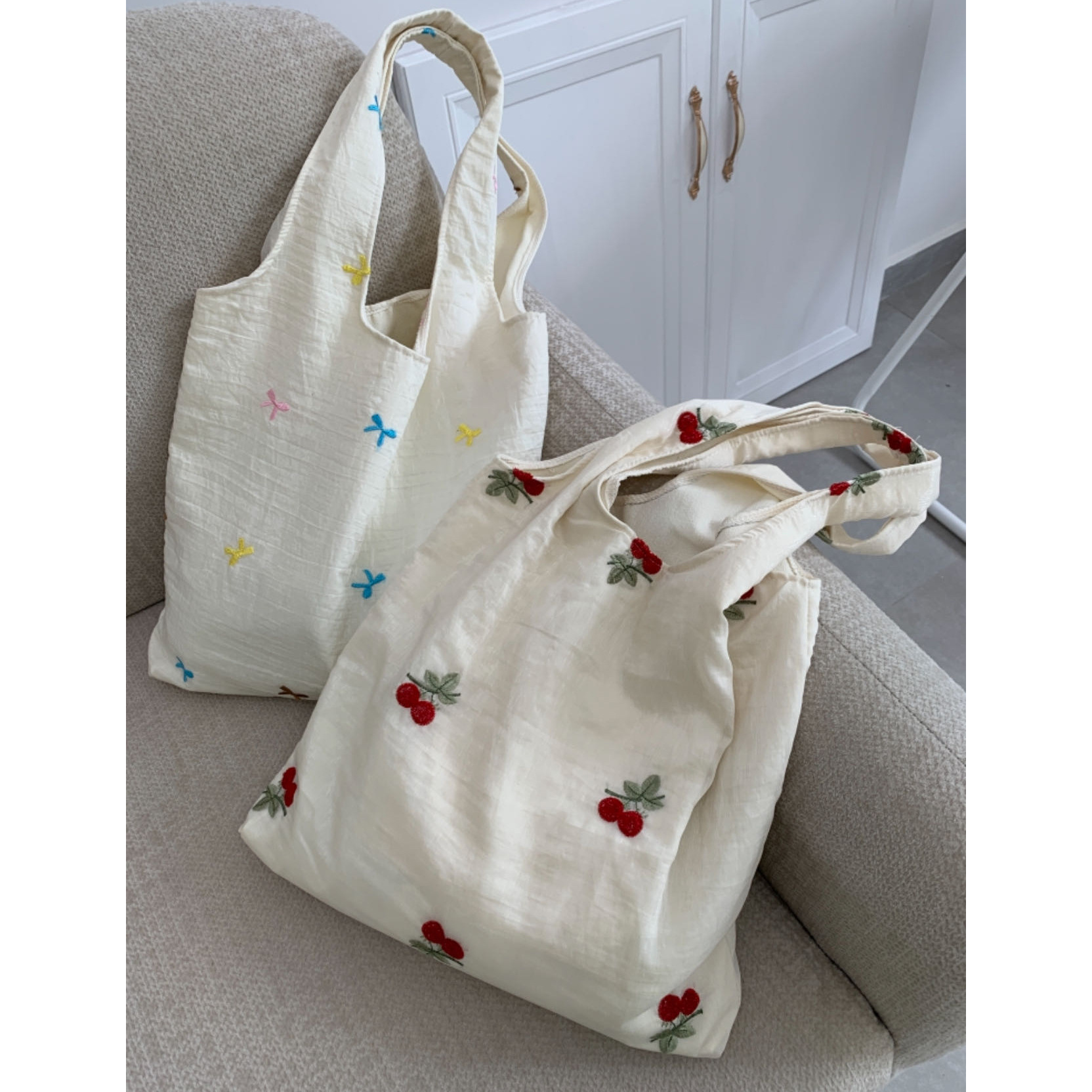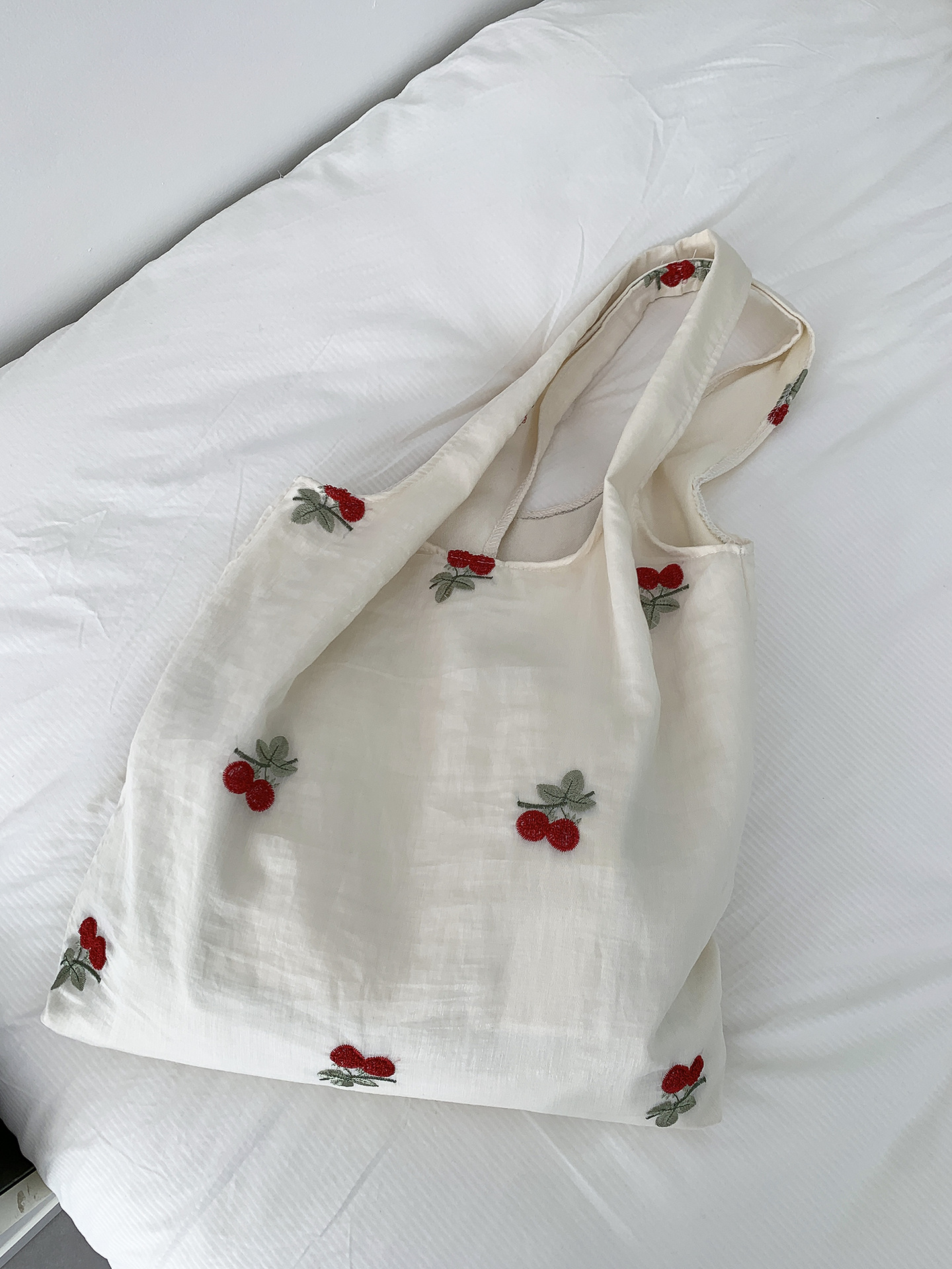 インチュール刺繍チェリー大容量学生ショルダーバッグ女性の脇の下バッグ通勤キャンバスバッグトートバッグ