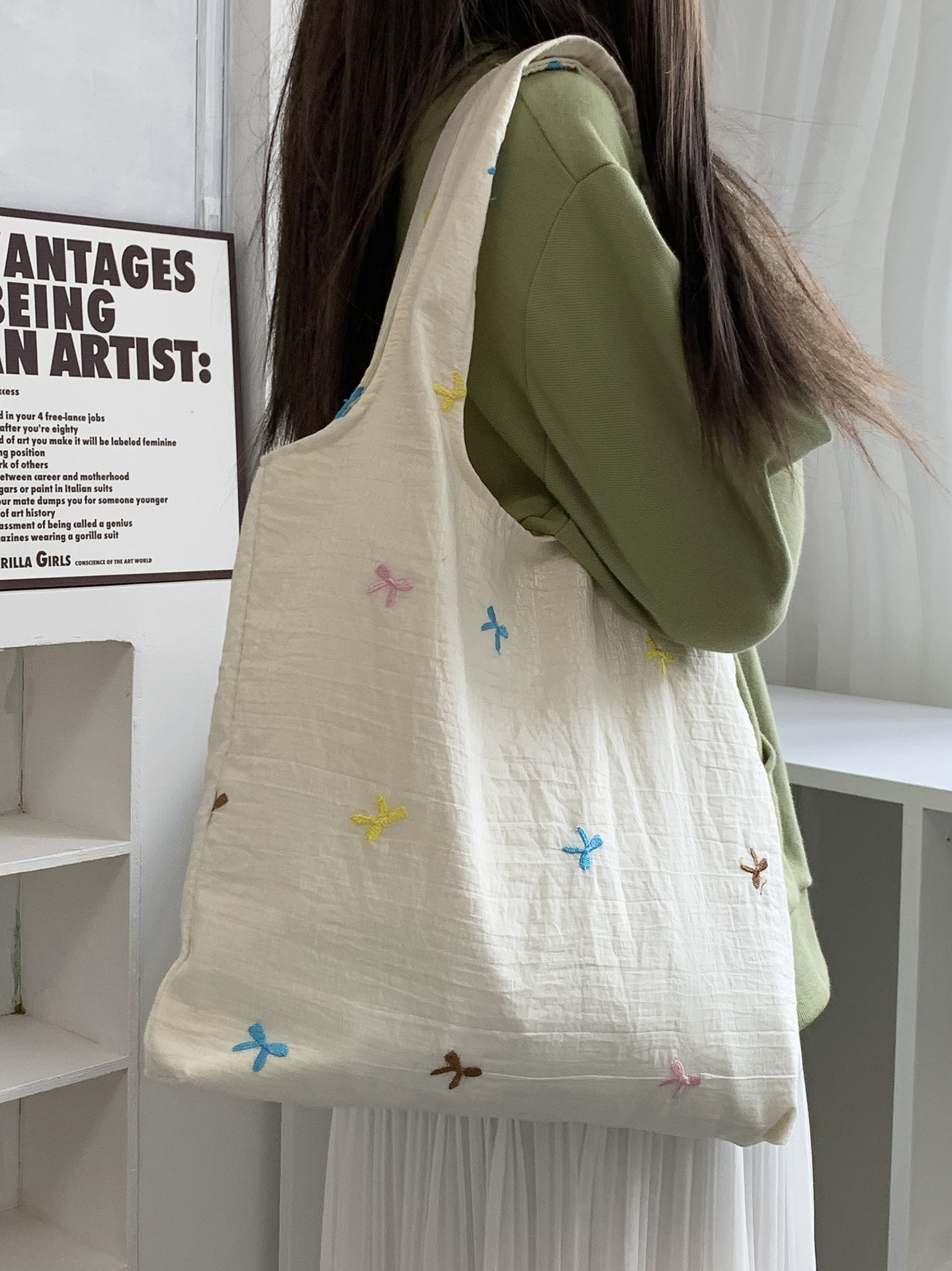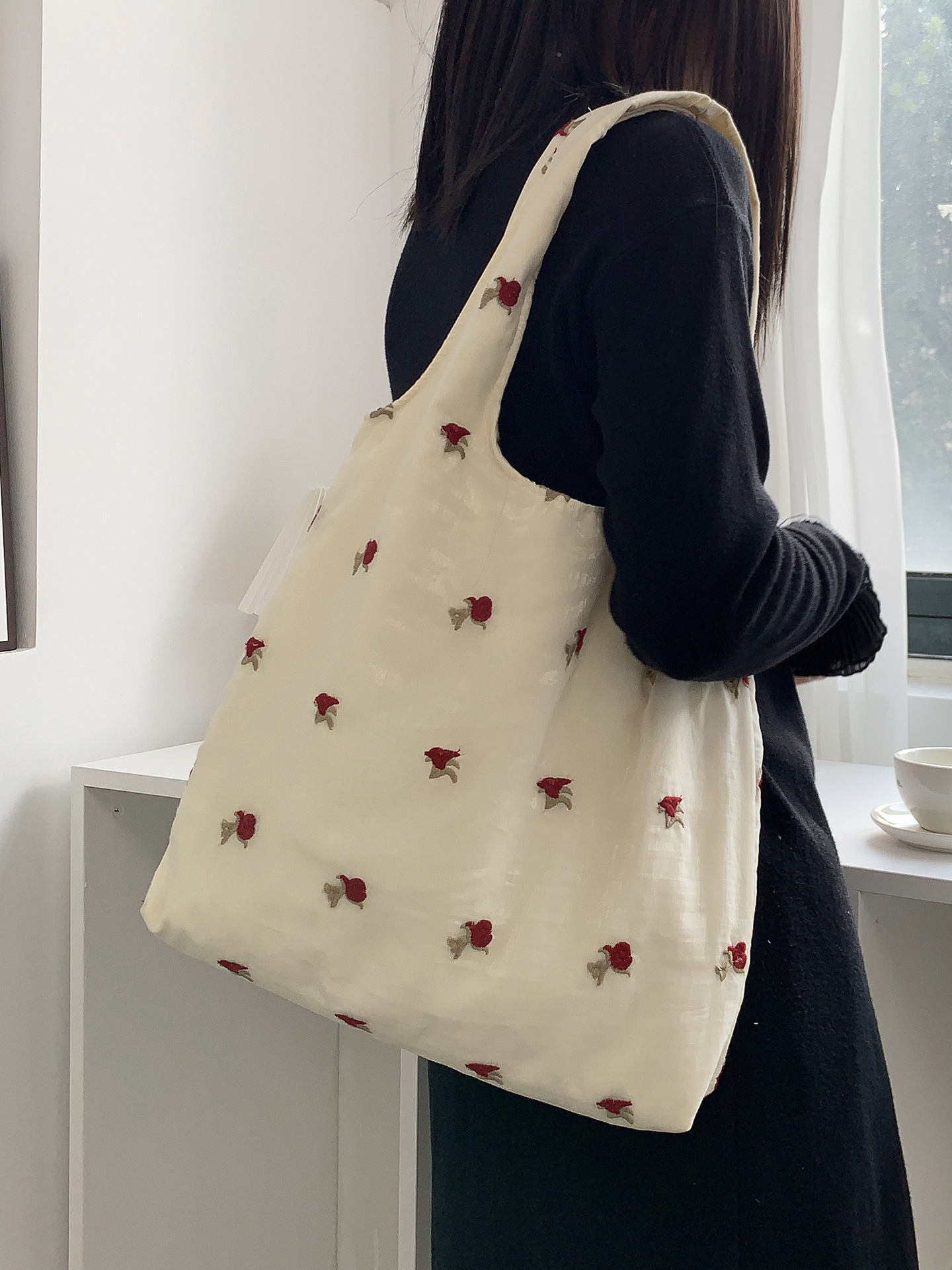 包包韩国小众刺绣碎花帆布包女单肩手提小清新百搭布袋慵懒风韩系
